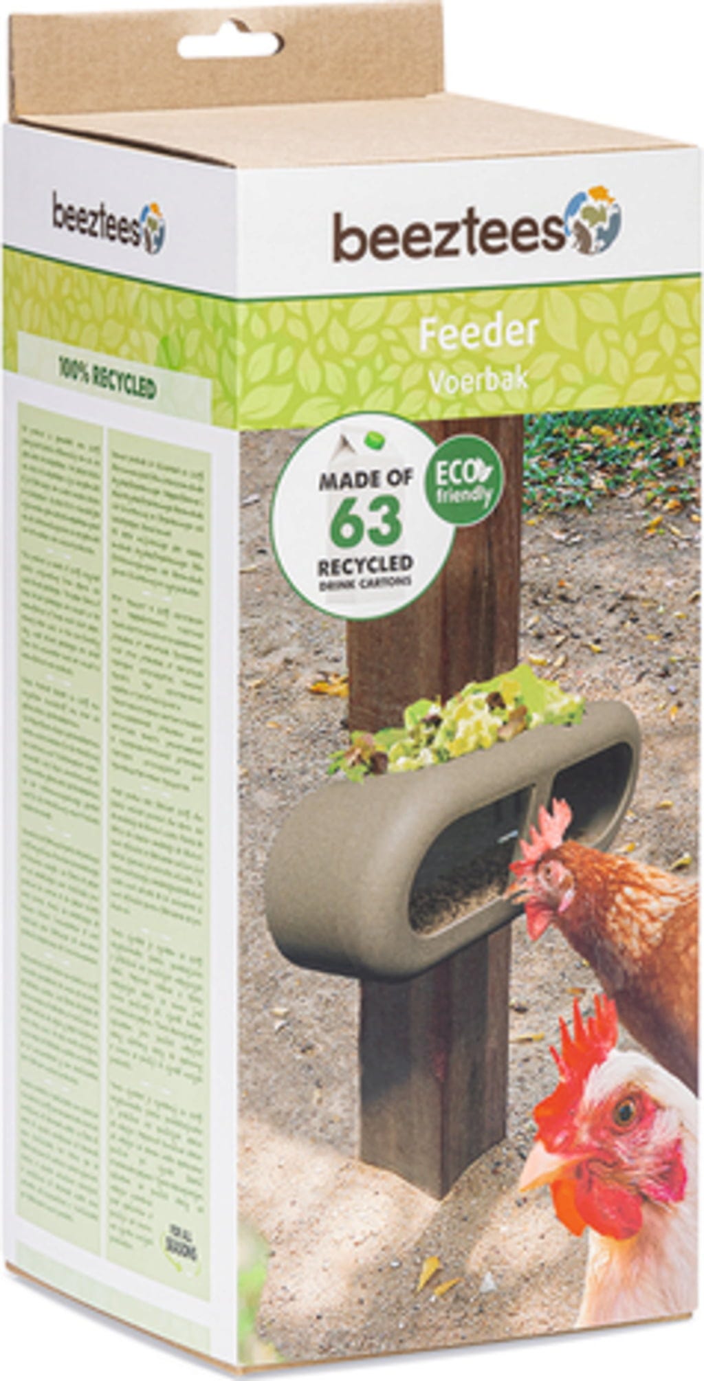 Materiál: kŕmidlo pre sliepky Beeztees je nielen praktické, ale aj šetrné k životnému prostrediu, pretože je vyrobené zo 100 % recyklovaného plastu, čo zodpovedá cca 63 kartónom od nápojov - vr. zapínania na suchý zips.