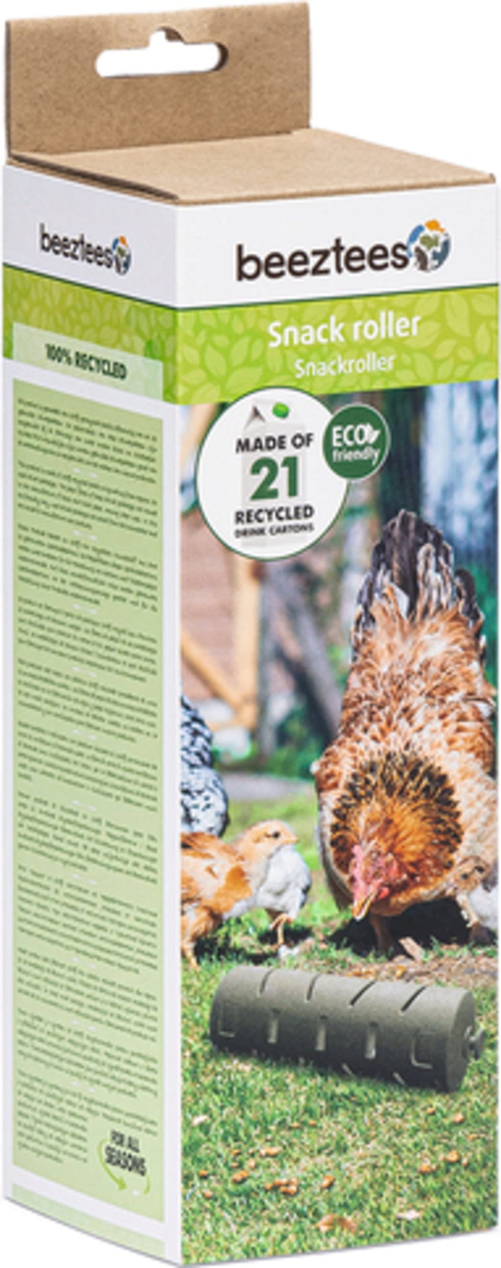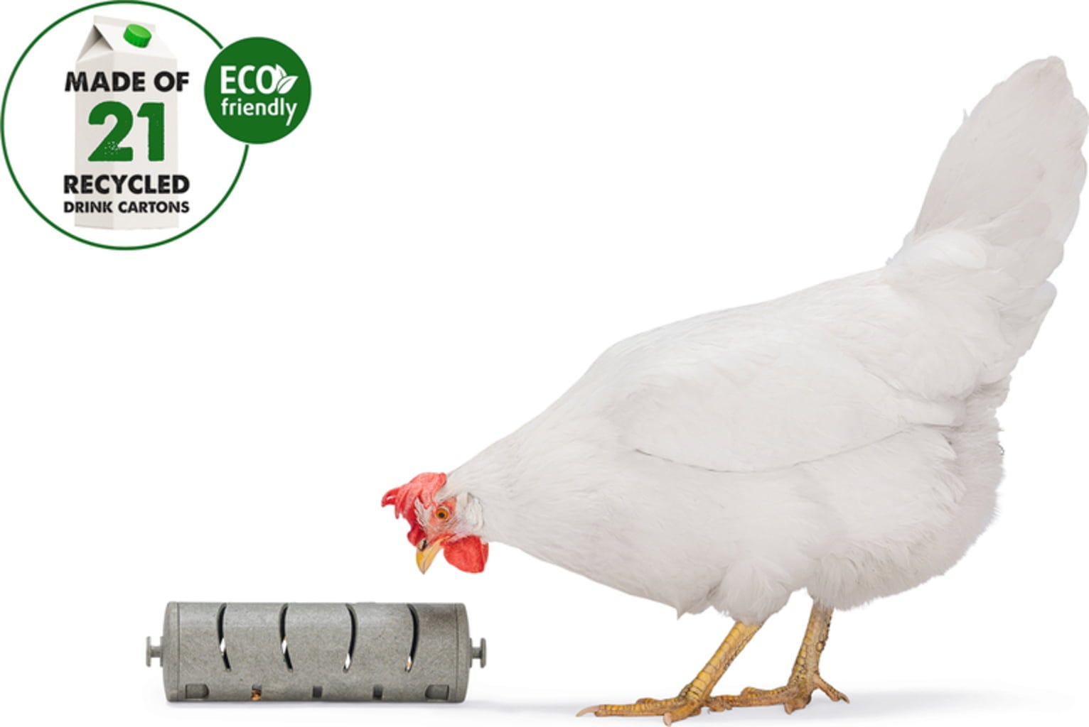 S valčekom Beeztees môžete svojim sliepkam dopriať veľa zábavy s chutnými pochúťkami. Tento šikovný valček je navrhnutý tak, aby krmivo alebo chutné občerstvenie prepadávalo cez malé otvory, keď keď doň sliepka ďobe alebo sa s ním hrá.