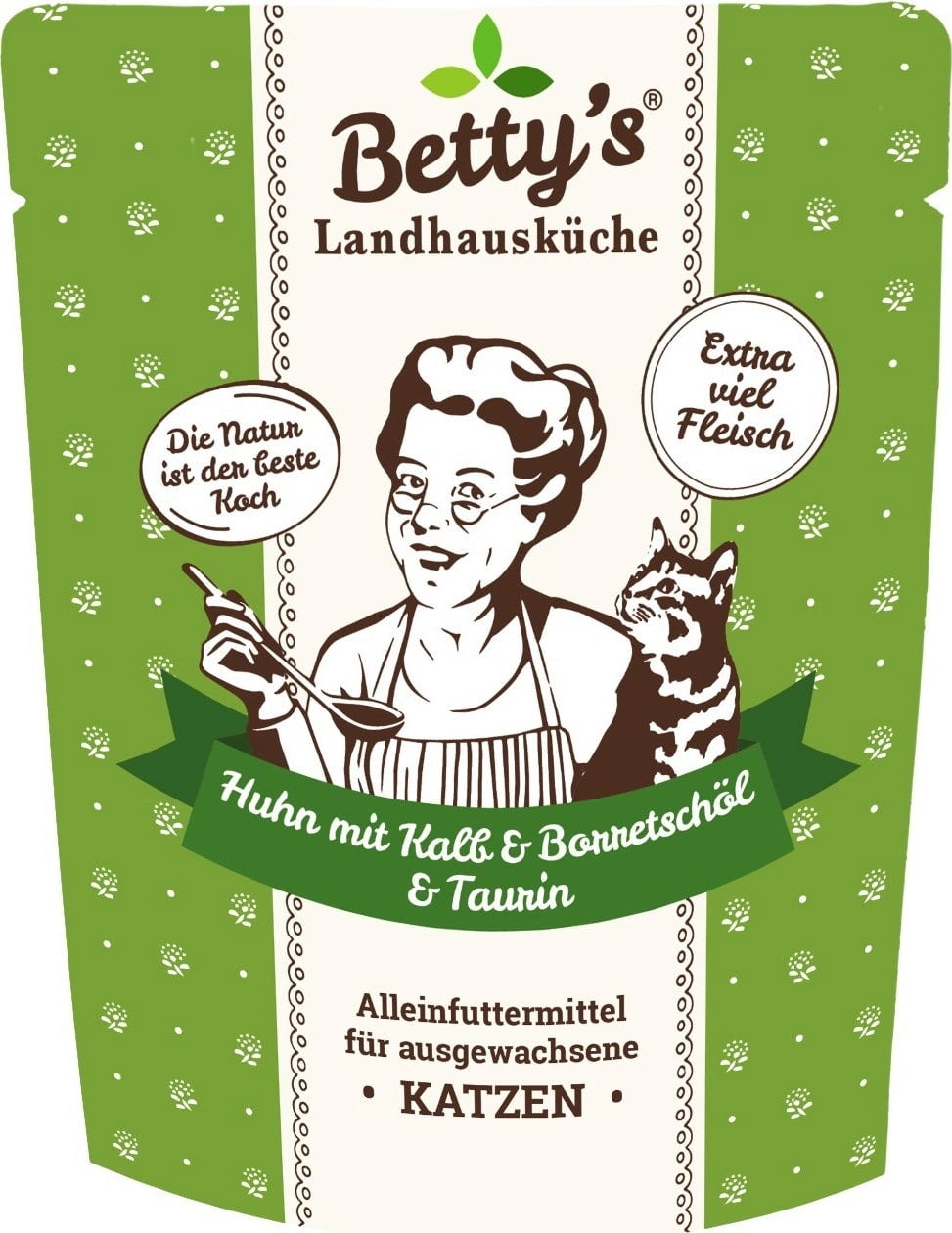 Betty's Landhausküche Kapsička pre mačky Adult kura s teľacím mäsom a borákovým olejom, 250 g