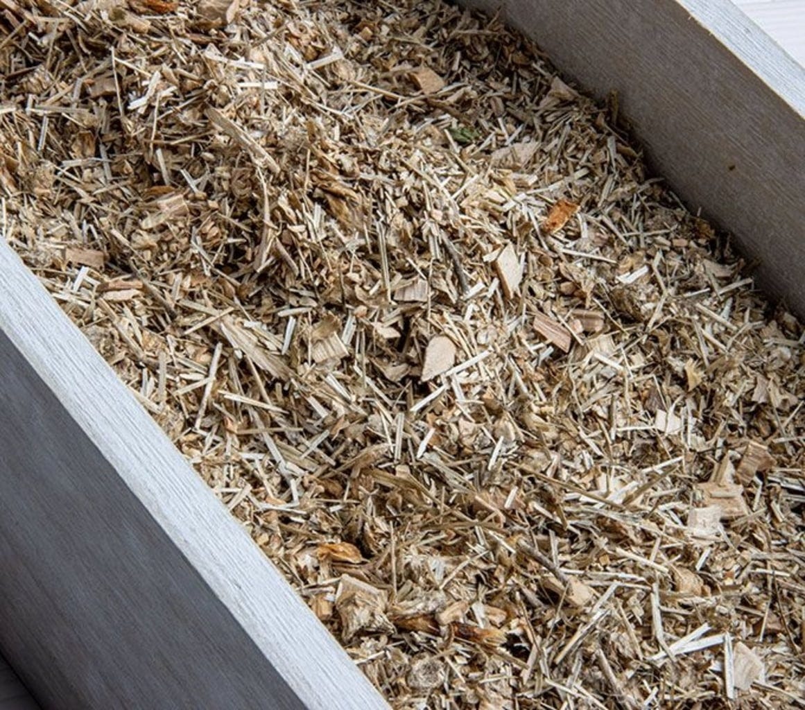 - Prírodný mix podstielky zo špaldovej podstielky, ľanovej podstielky, ako aj z borovicového a jabloňového dreva