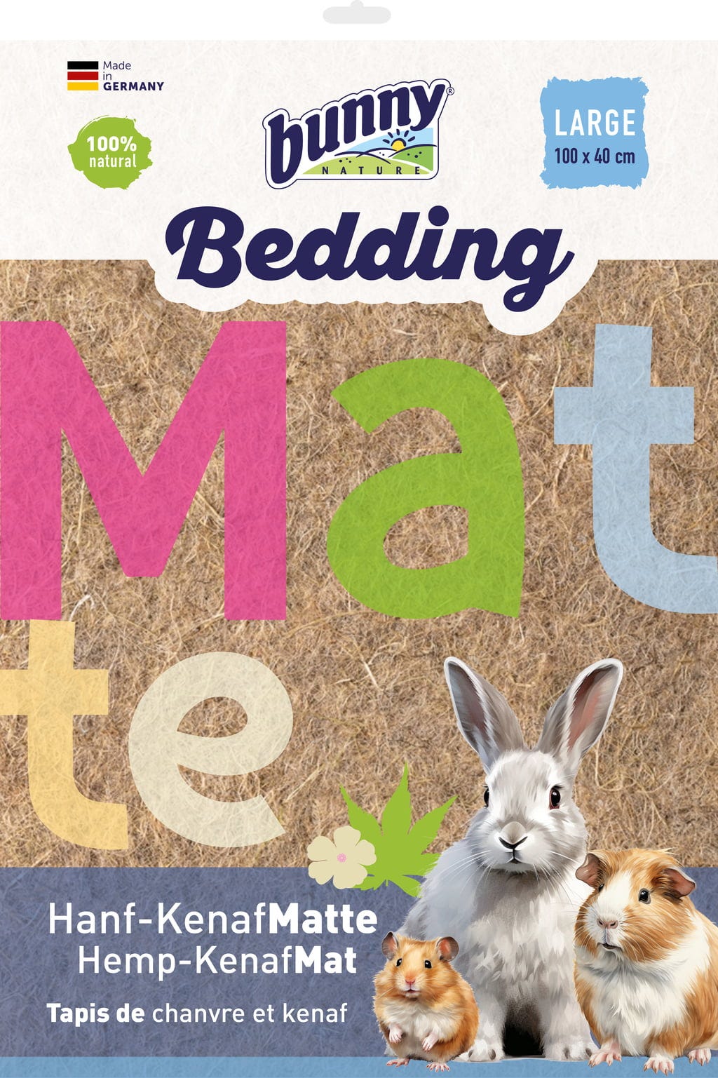- Vysokokvalitná obojstranná podložka z prírodných konopných a kenafových vlákien pre trpasličie králiky a hlodavce