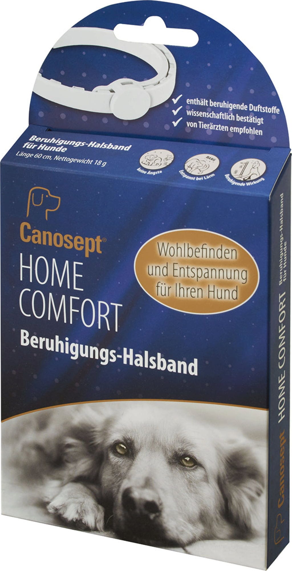Aby bolo možné psom v takýchto situáciách poskytnúť prirodzenú podporu, bol vyvinutý tento upokojujúci obojok Home Comfort od značky Canosept. Do jeho polymérovej matrice sú zakomponované výlučne rastlinné zložky, ako sú valeriána a levanduľa. Jemné vonné látky pôsobia na psí ňufák a môžu podporiť vnútorný pokoj.