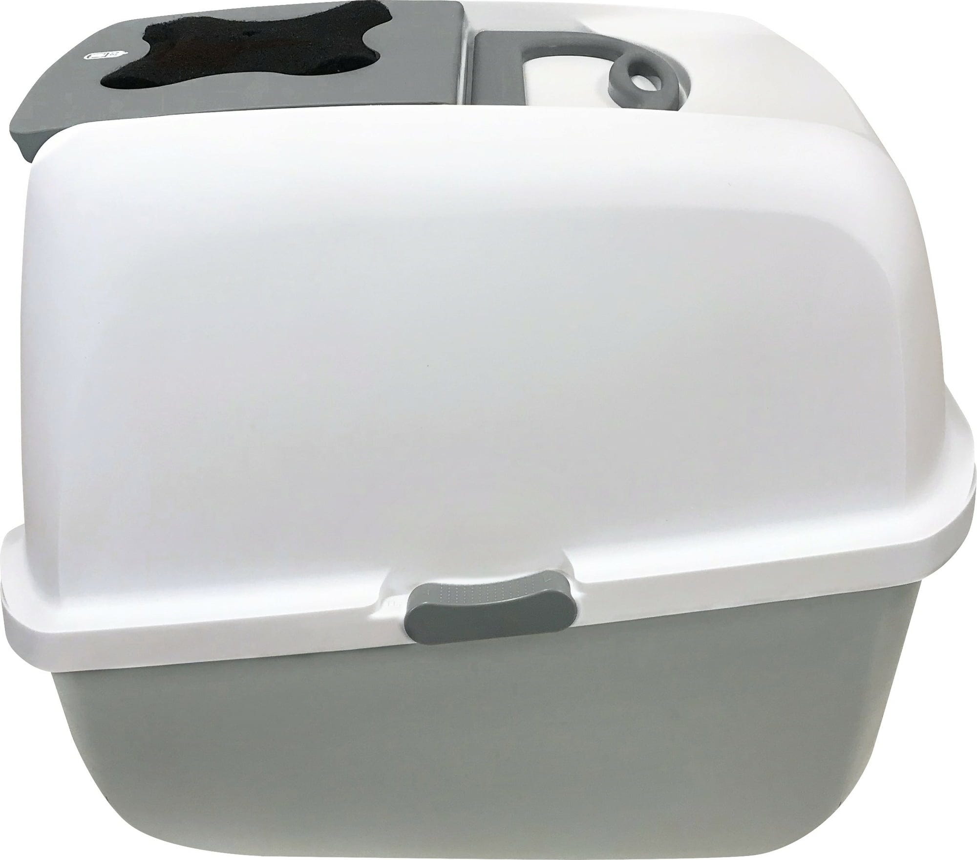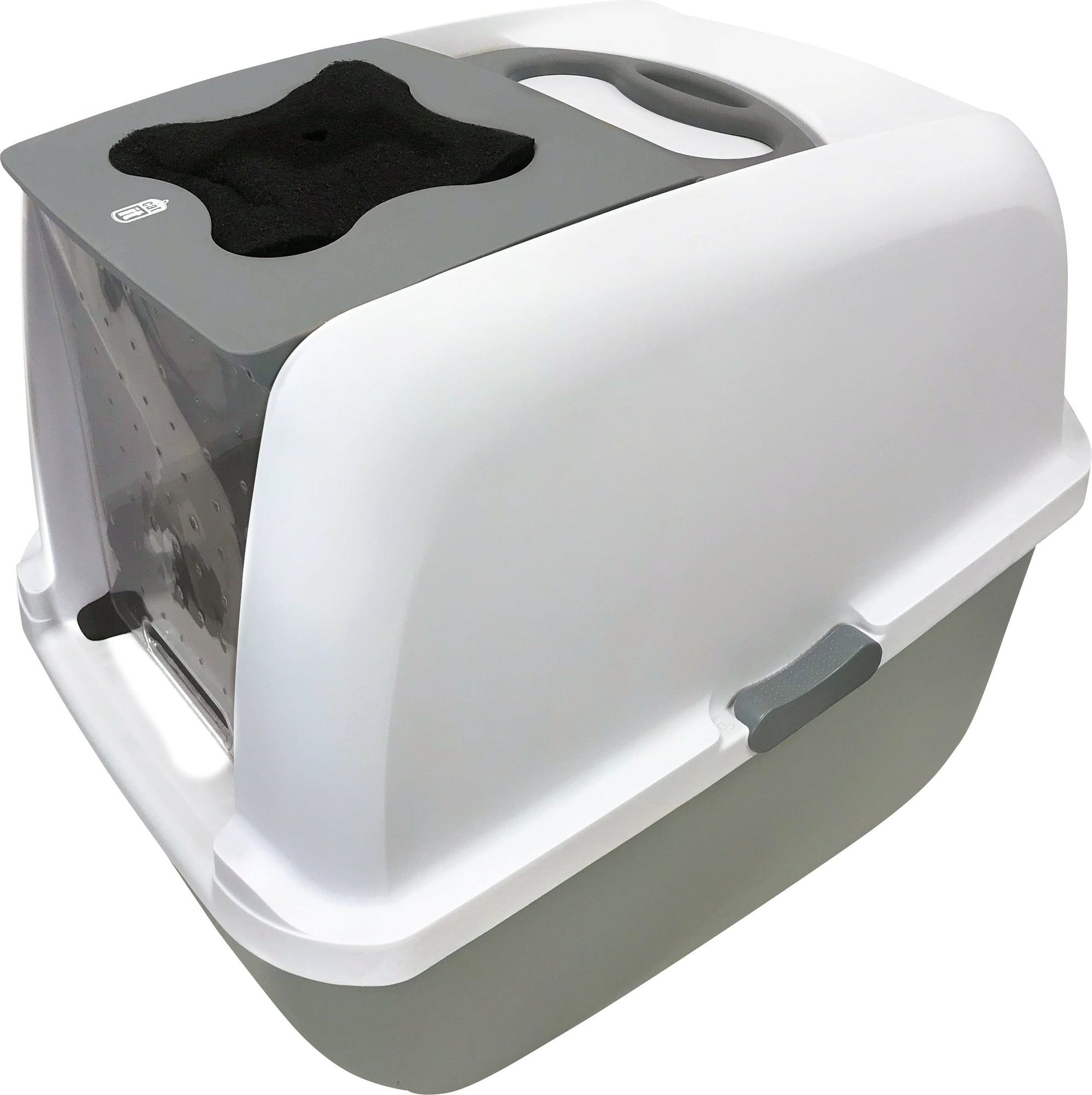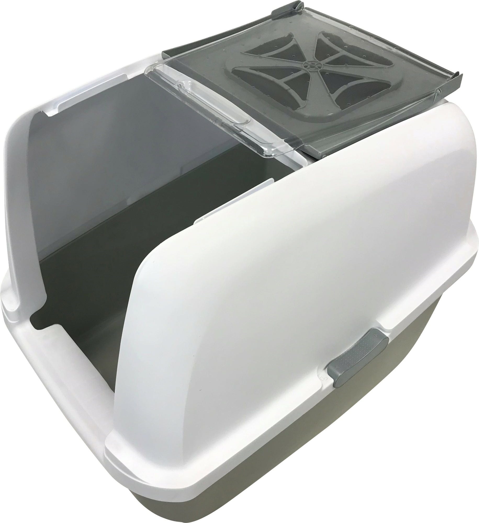 Toalety pre mačky Catit s vekom sú ideálne pre diskrétne vykonávanie potreby vašej mačky. Pohodlný vstup uľahčuje prístup a čistenie. Výklopné dvierka sú tiež bezpečné pre labky. Integrovaný uhlíkový filter redukuje zápach vo vnútri a kryt je vyrobený zo 100 % materiálov bez BPA, ktoré sa ľahko čistia a nezanechávajú škvrny. Rukoväť uľahčuje prenášanie.