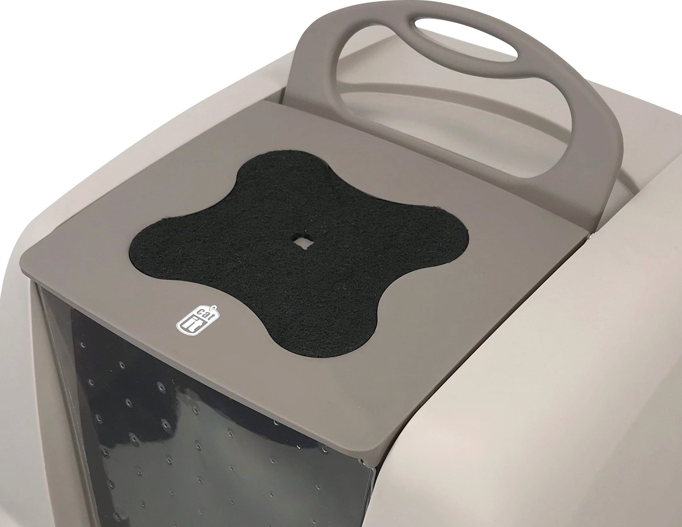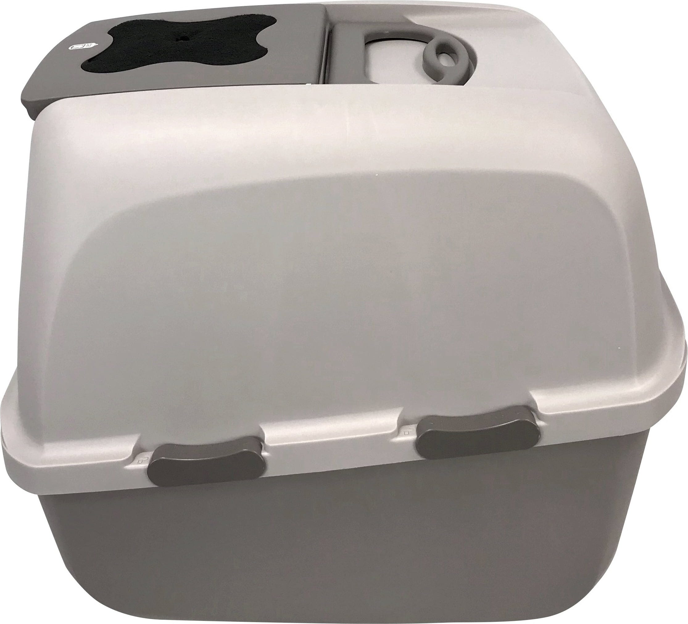 Mačacia toaleta so strieškou Catit je ideálna pre veľké zvieratá alebo domácnosti s viacerými mačkami. Mimoriadne veľký vchod uľahčuje mačkám vstup a majiteľom čistenie. Samozrejme, dvierka sú tiež bezpečné pre labky. Integrovaný uhlíkový filter znižuje zápach a kryt je vyrobený zo 100 % materiálov bez BPA, ktoré sa ľahko čistia a nezanechávajú škvrny. Manipuláciu uľahčuje rukoväť na prenášanie.