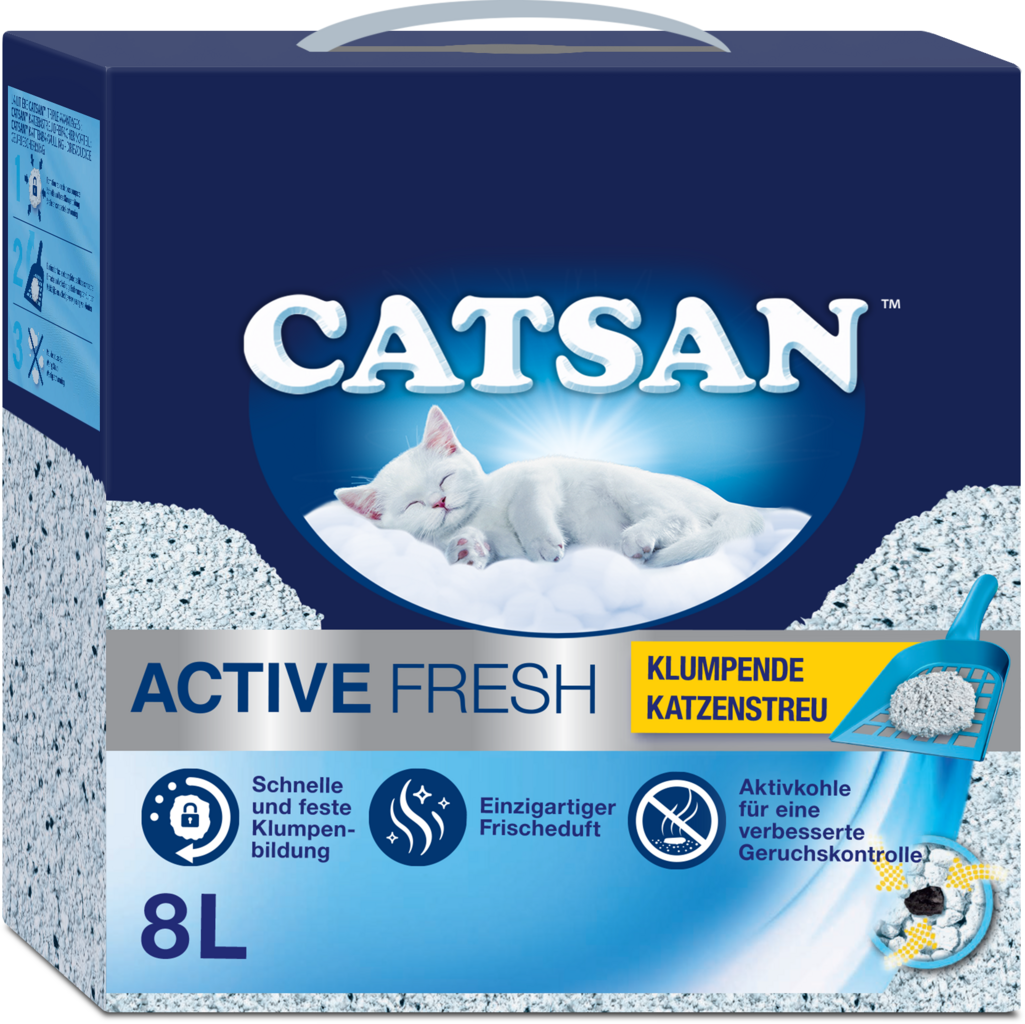 Mačky sú veľmi čistotné a milujú čistotu a sviežosť. Hrudkujúca podstielka Catsan Active Fresh je veľmi savé a hrudkujúce stelivo pre mačky, ktoré udržia toaletu vášho miláčika čistú a suchú. Obsiahnuté čierne aktívne uhlie a biely prírodný íl efektívne pohlcujú nepríjemné pachy. Tekutiny a pach sú bezpečne uzavreté v malých, pevných hrudkách. Hrudky môžete veľmi ľahko odstraňovať každý deň. Stelivo tak nie je nutné vymieňať veľmi často.
