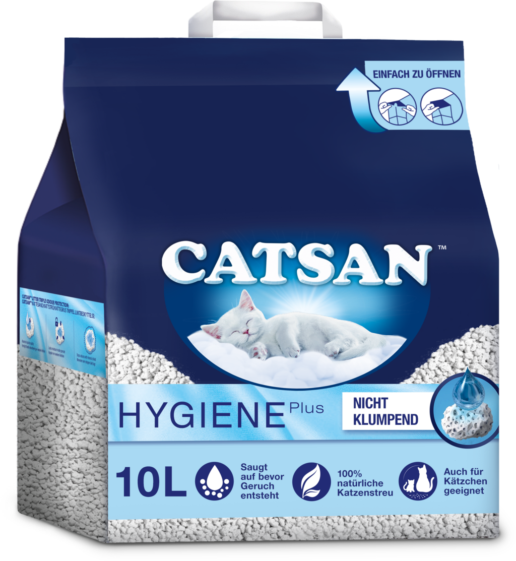 Zapáchajúce toalety pre mačky odpudzujú ľudí, ale aj mačky s citlivým nosom - poriadok a čistota sú preto nevyhnutnosťou! So stelivom pre mačky Catsan Hygiene Plus môžete toaletu vašej mačky udržiavať vždy hygienicky čistú. Táto 100 % prírodná podstielka sa skladá zo zmesi vápencového a kremičitého piesku, ktorá je jemná aj k citlivým labkám malých mačiatok.