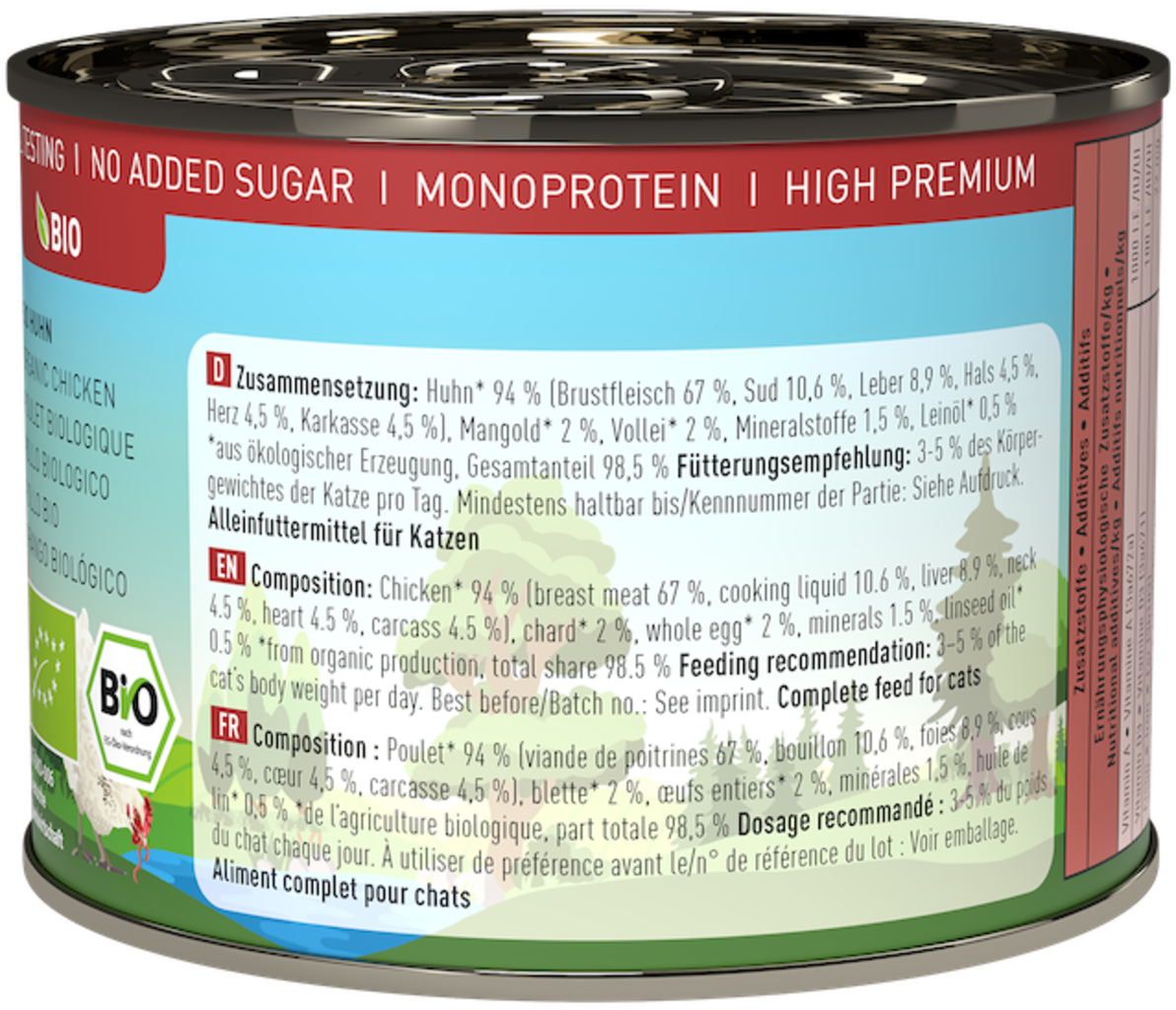 Toto vysokokvalitné monoproteínové mokré krmivo v bio kvalite ponúka mačke prirodzený a druhovo vhodný pôžitok. Vybrané bio ingrediencie a špeciálna receptúra podľa konceptu „koristi“ dodávajú vašej mačke všetko, čo potrebuje, a prispievajú tak k základnej časti vitálneho života mačky.