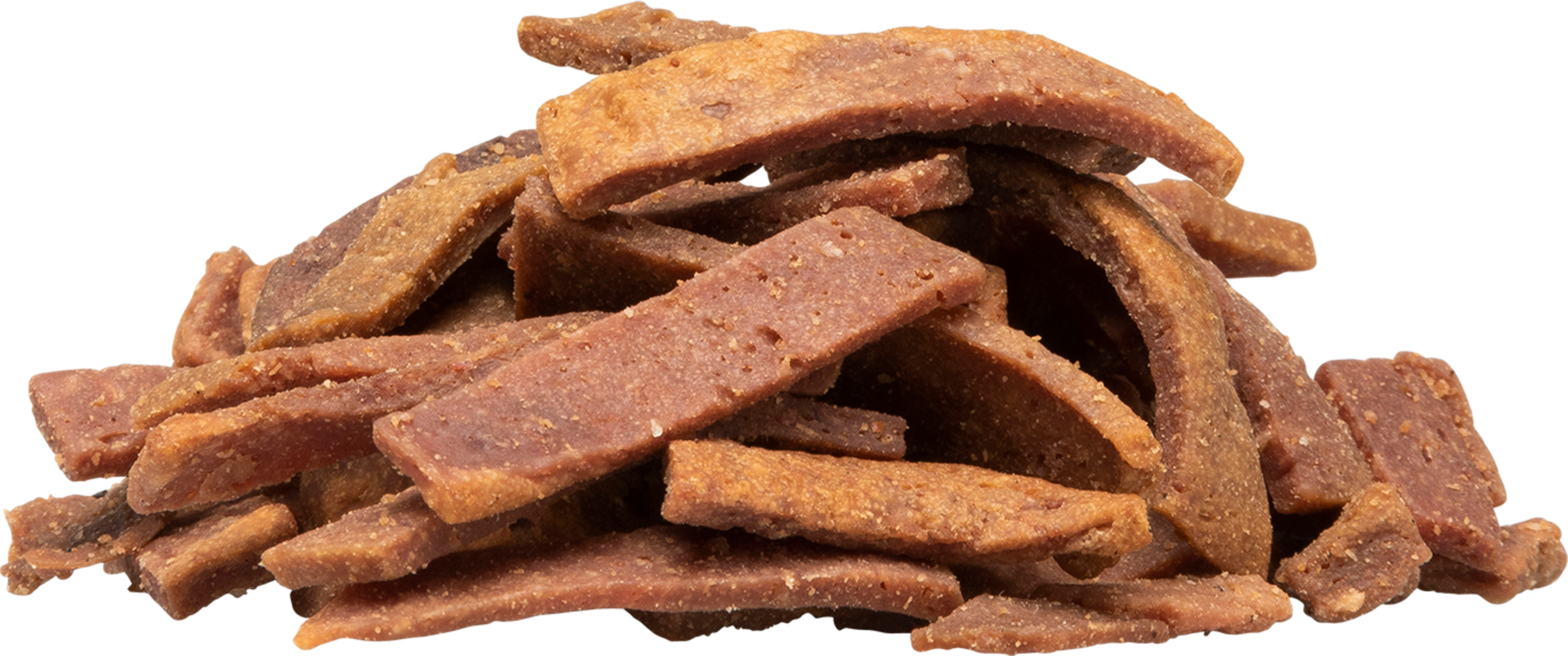 Grilované a potom na vzduchu jemne sušené mäsové pásiky, ktoré sú neodolateľnou pochúťkou a rozmaznávajú obzvlášť vysokým obsahom mäsa a jednou ďalšou hodnotnou zložkou v každom druhu. Zvonku úžasne chrumkavé, vnútri jemné a s intenzívnou mäsovou arómou.