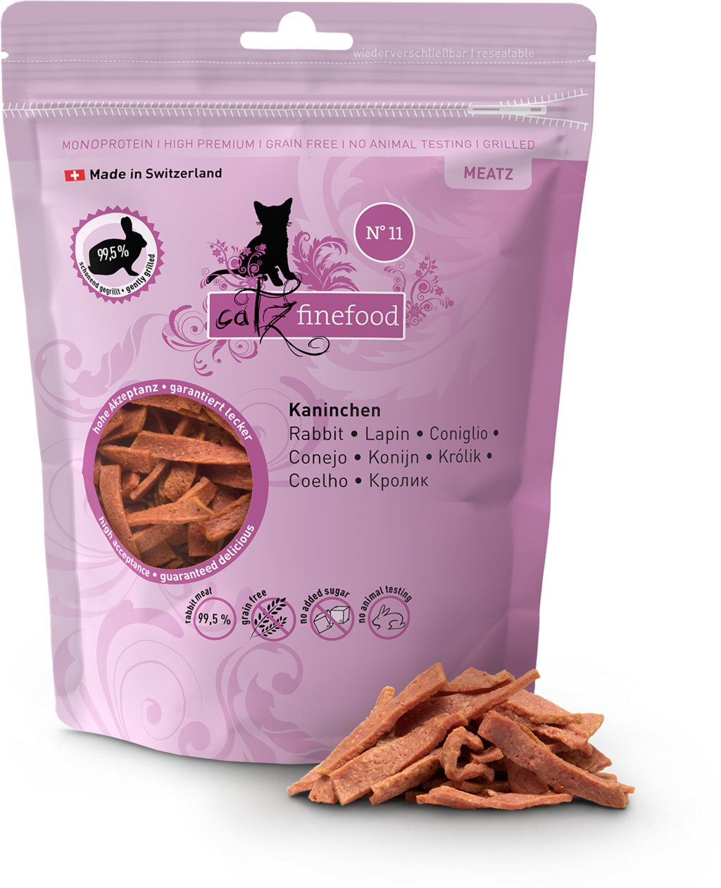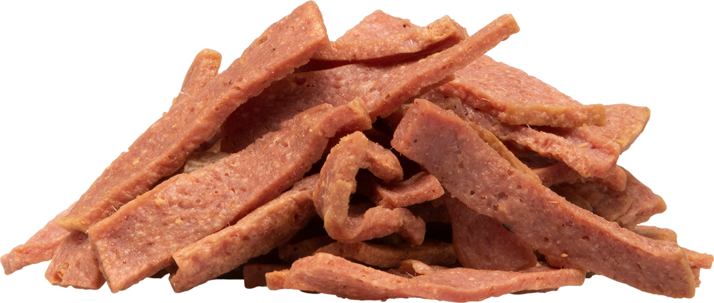 Grilované a potom na vzduchu jemne sušené mäsové pásiky, ktoré sú neodolateľnou pochúťkou a rozmaznávajú obzvlášť vysokým obsahom mäsa a jednou ďalšou hodnotnou zložkou v každom druhu. Zvonku úžasne chrumkavé, vnútri jemné a s intenzívnou mäsovou arómou.