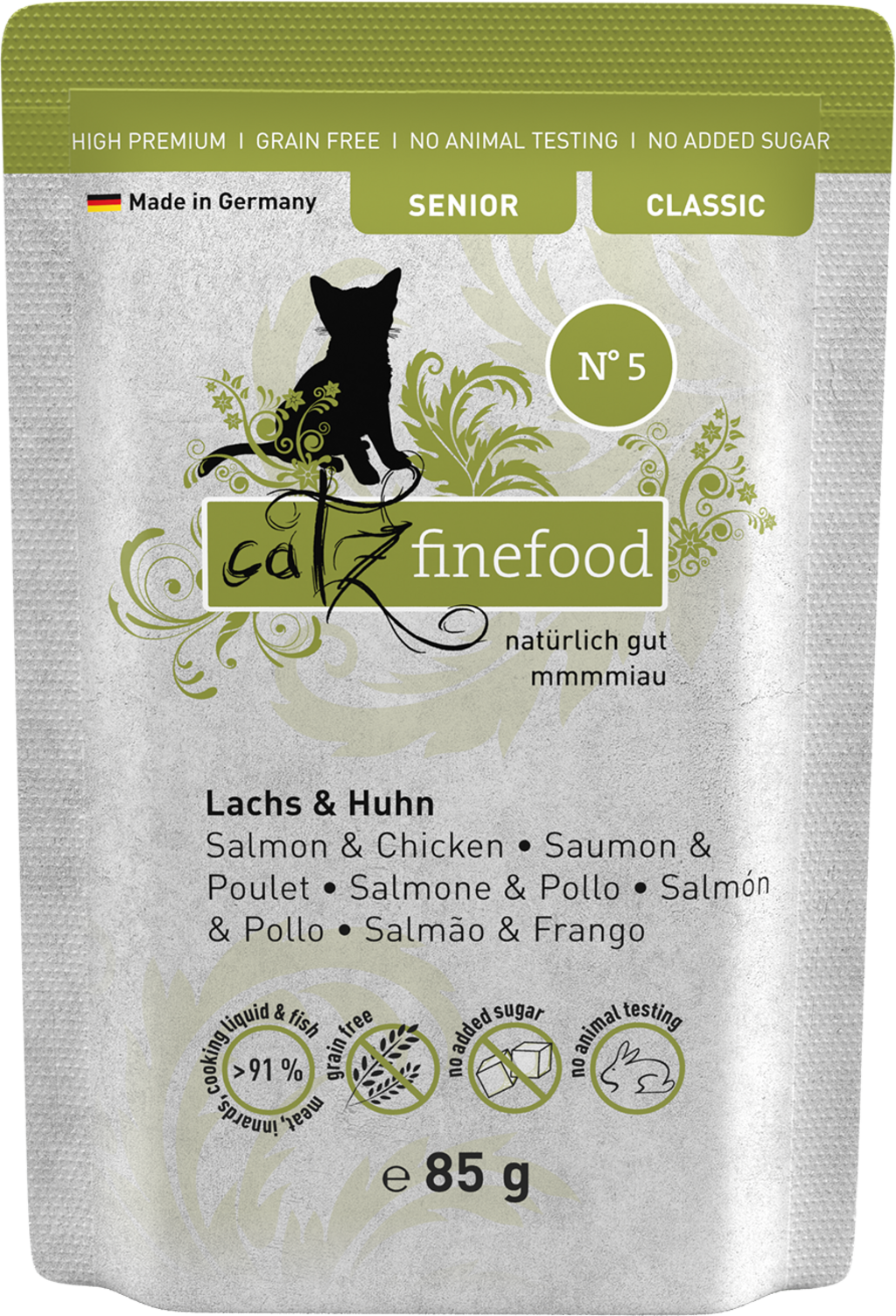 catz finefood Losos a kuracie mäso Senior N° 05, 85 g € 1,34 (€ 15,76 / kg)