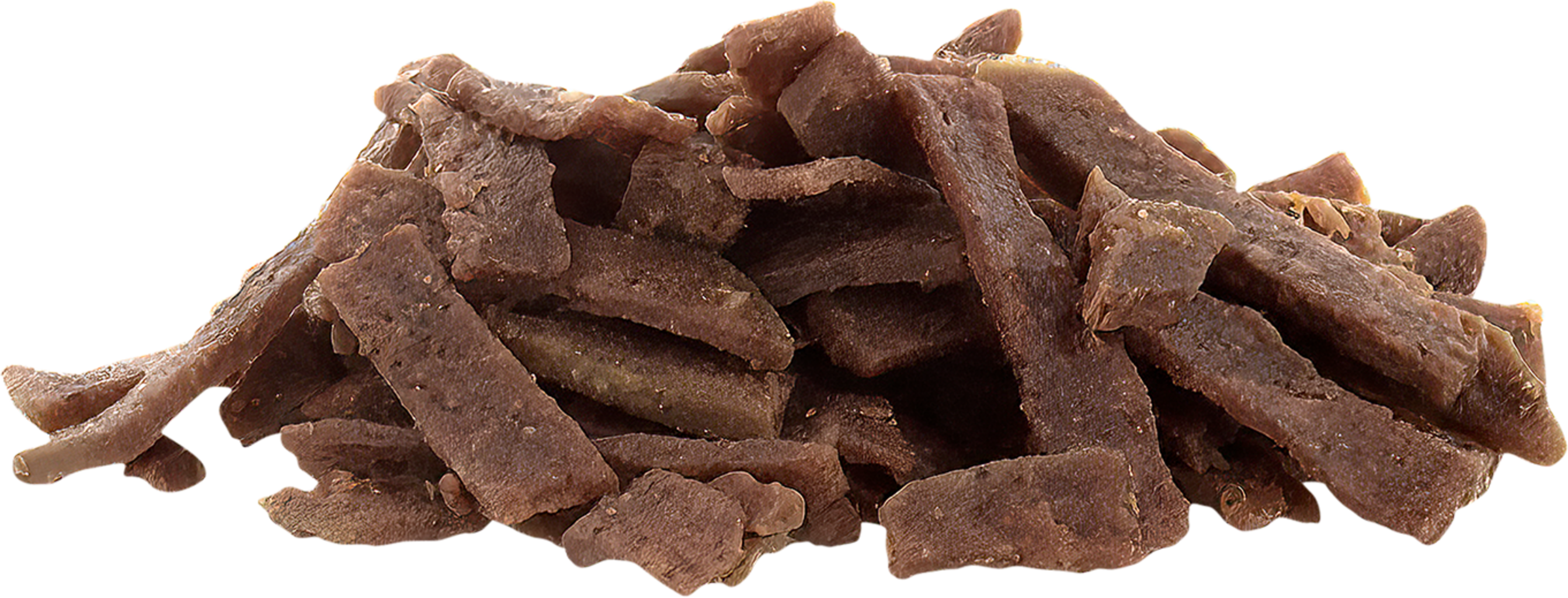 Grilované a potom na vzduchu jemne sušené mäsové pásiky, ktoré sú neodolateľnou pochúťkou a rozmaznávajú obzvlášť vysokým obsahom mäsa a jednou ďalšou hodnotnou zložkou v každom druhu. Zvonku úžasne chrumkavé, vnútri jemné a s intenzívnou mäsovou arómou.