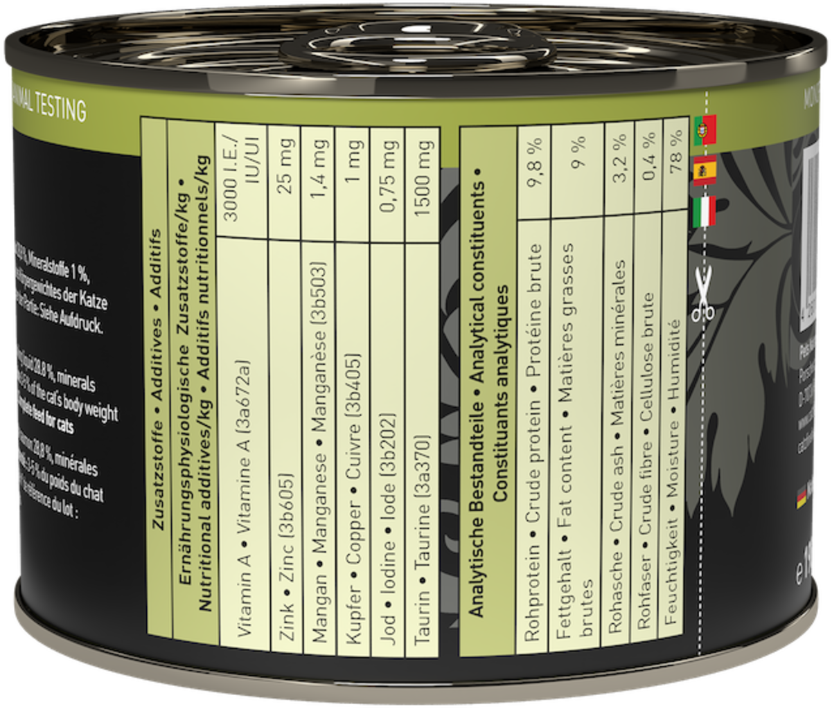 Toto chutné prémiové mokré krmivo zaručene rozpriade Vašu mačku! Vybrané ingrediencie, receptúra prispôsobená potrebám druhu podľa konceptu koristi a úplne bez zbytočných prísad – to je čistý pôžitok pre Vašu mačku a vynikajúci základ pre vitálny život mačky.