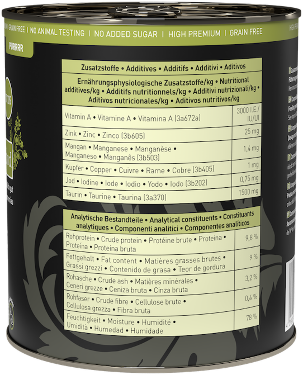 Toto chutné prémiové mokré krmivo zaručene rozpriade Vašu mačku! Vybrané ingrediencie, receptúra prispôsobená potrebám druhu podľa konceptu koristi a úplne bez zbytočných prísad – to je čistý pôžitok pre Vašu mačku a vynikajúci základ pre vitálny život mačky.