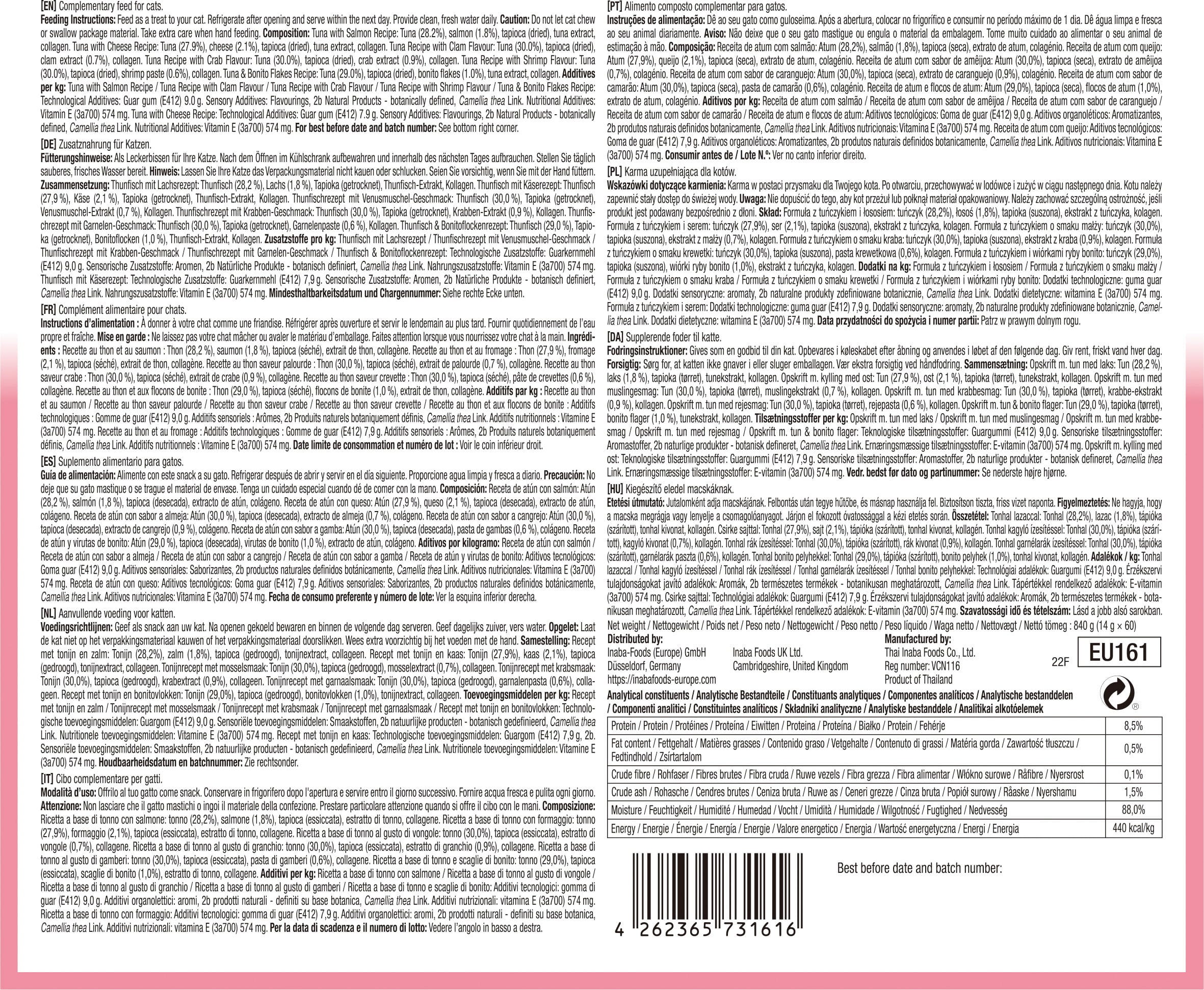 30 % Tuniak, Sušená tapioka, 0,6 % Krevetová pasta, Kolagén