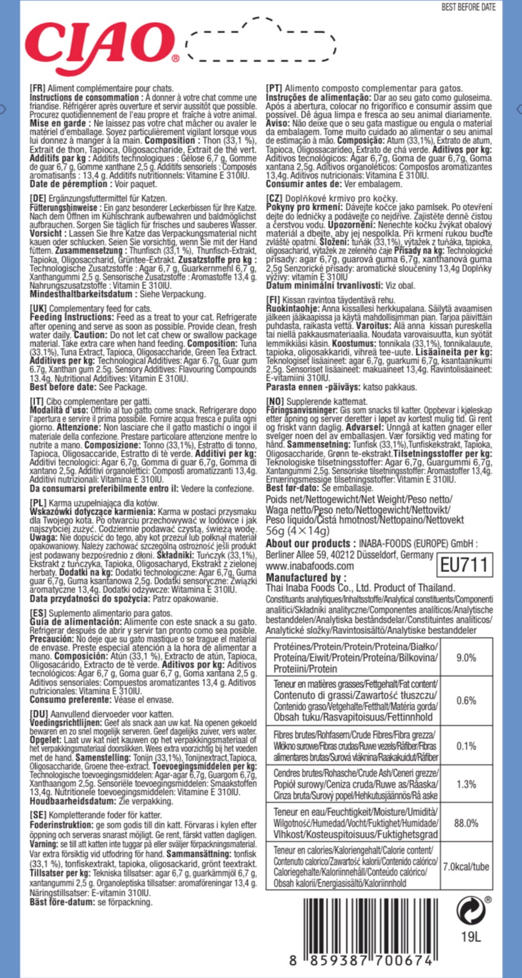 Chutný želé snack je neodolateľným pôžitkom pre mačky a nadchne nielen svojou skvelou textúrou, ale aj vybranými ingredienciami a receptúrou prispôsobenou potrebám zvierat. A keďže má mimoriadne nízky obsah kalórií, môžete túto maškrtu dopriať vašej mačke pokojne aj častejšie.