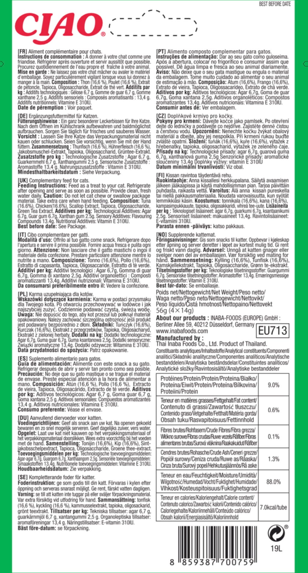 Chutný želé snack je neodolateľným pôžitkom pre mačky a nadchne nielen svojou skvelou textúrou, ale aj vybranými ingredienciami a receptúrou prispôsobenou potrebám zvierat. A keďže má mimoriadne nízky obsah kalórií, môžete túto maškrtu dopriať vašej mačke pokojne aj častejšie.