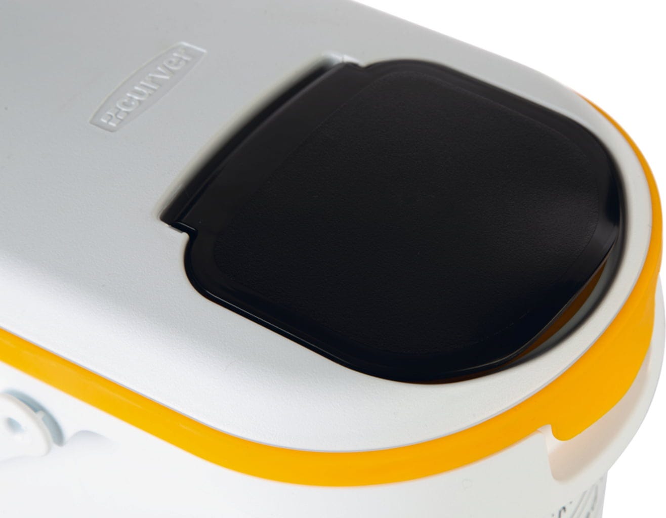 - Praktický otvor vo veku na jednoduché vyberanie krmiva