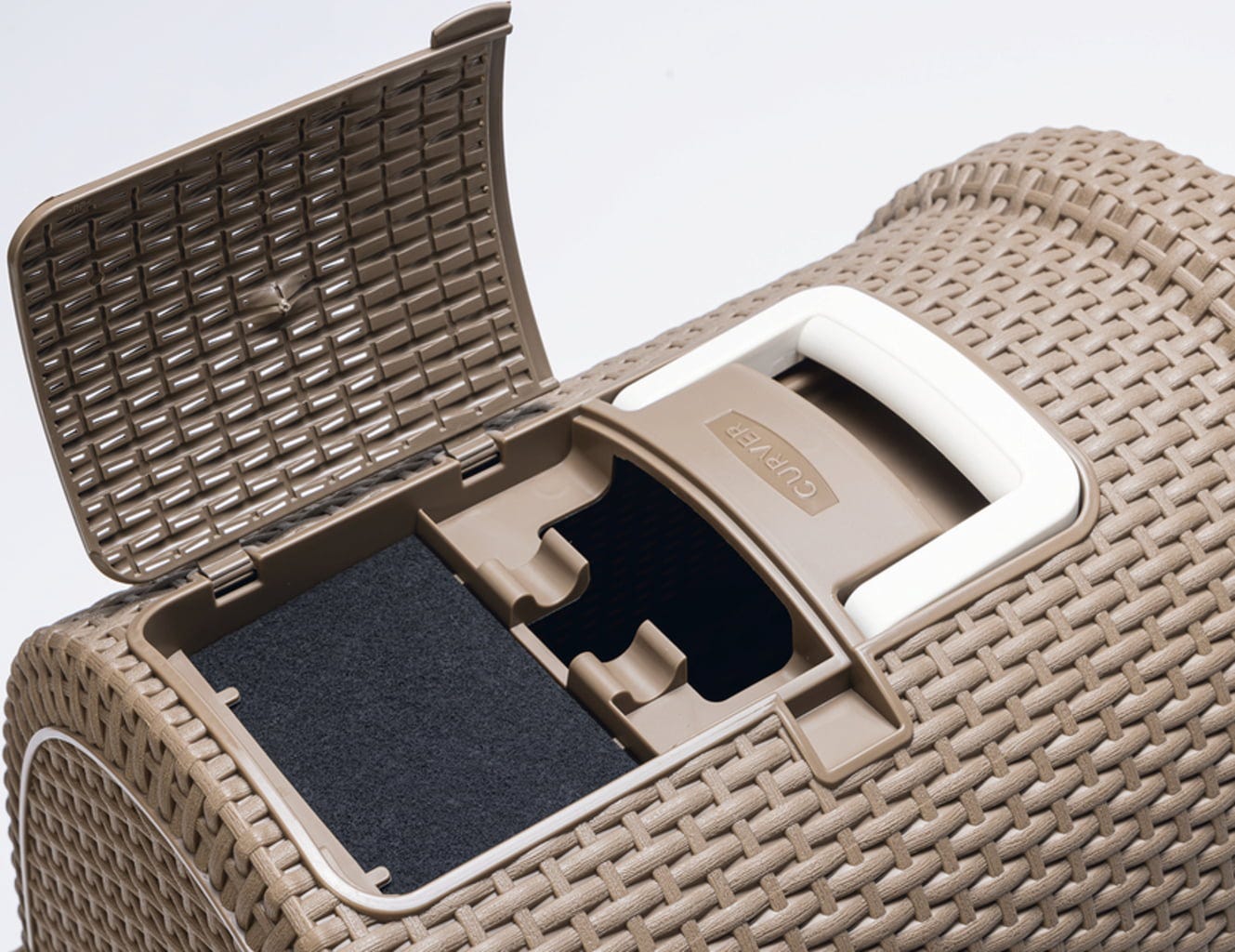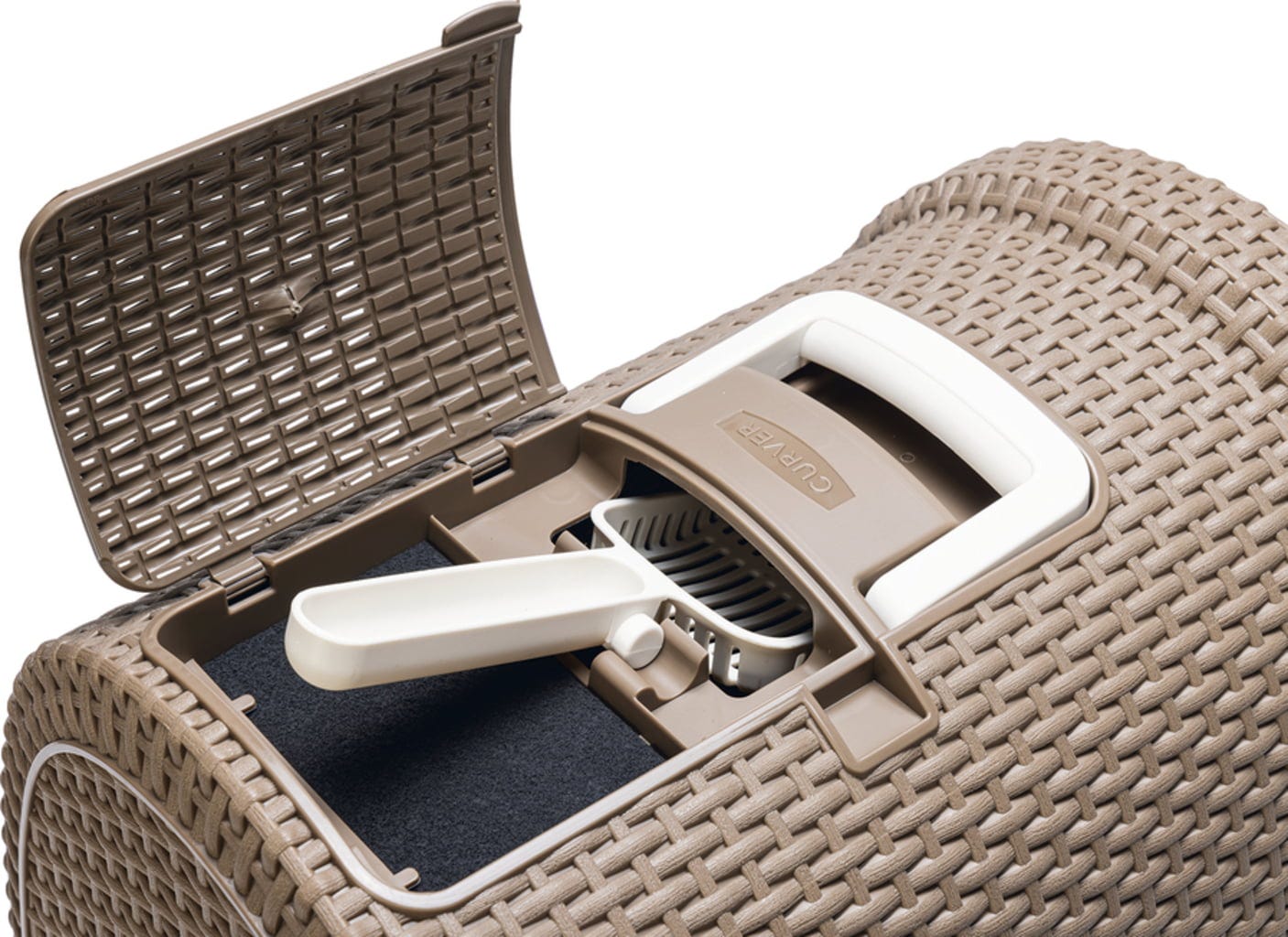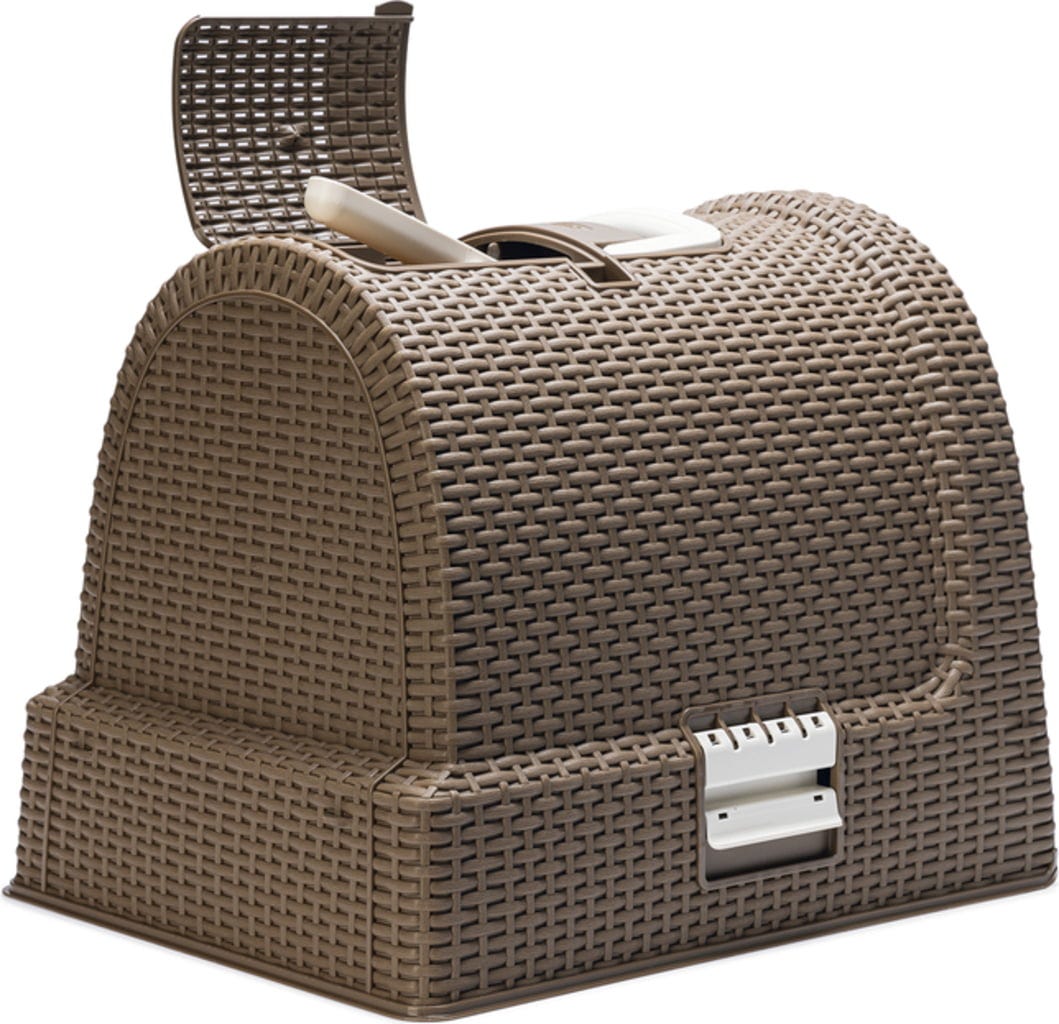 Curver Petlife Toaleta pre mačky s ratanovým vzhľadom moka