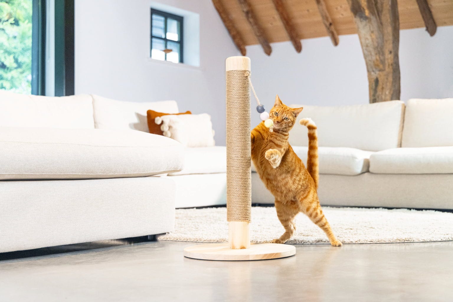 - Vyrobené z prírodného dreva a jutového lana