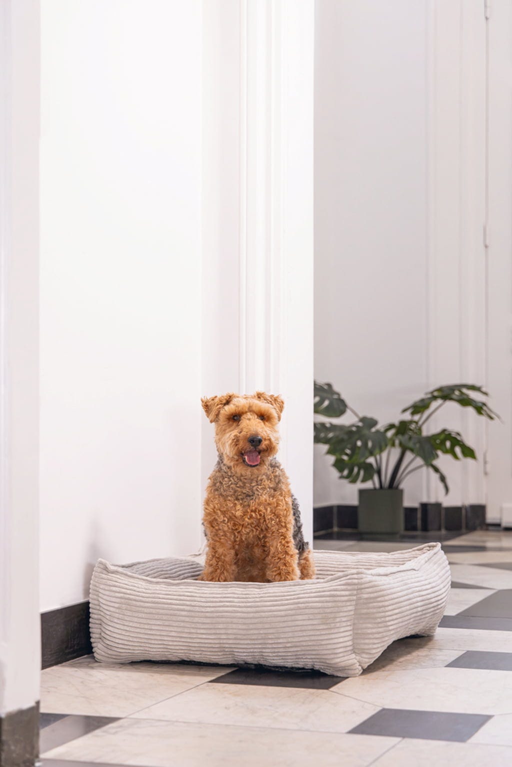 Designed by Lotte Pelech Ribbed Light Grey, 80 x 70 x 22 cm