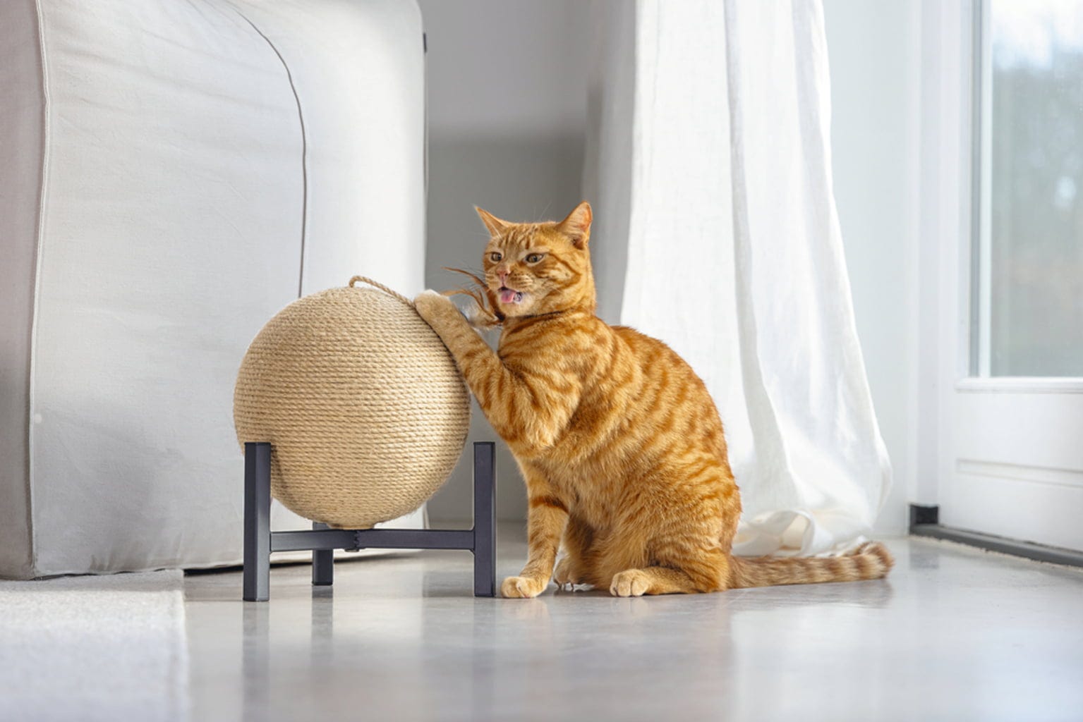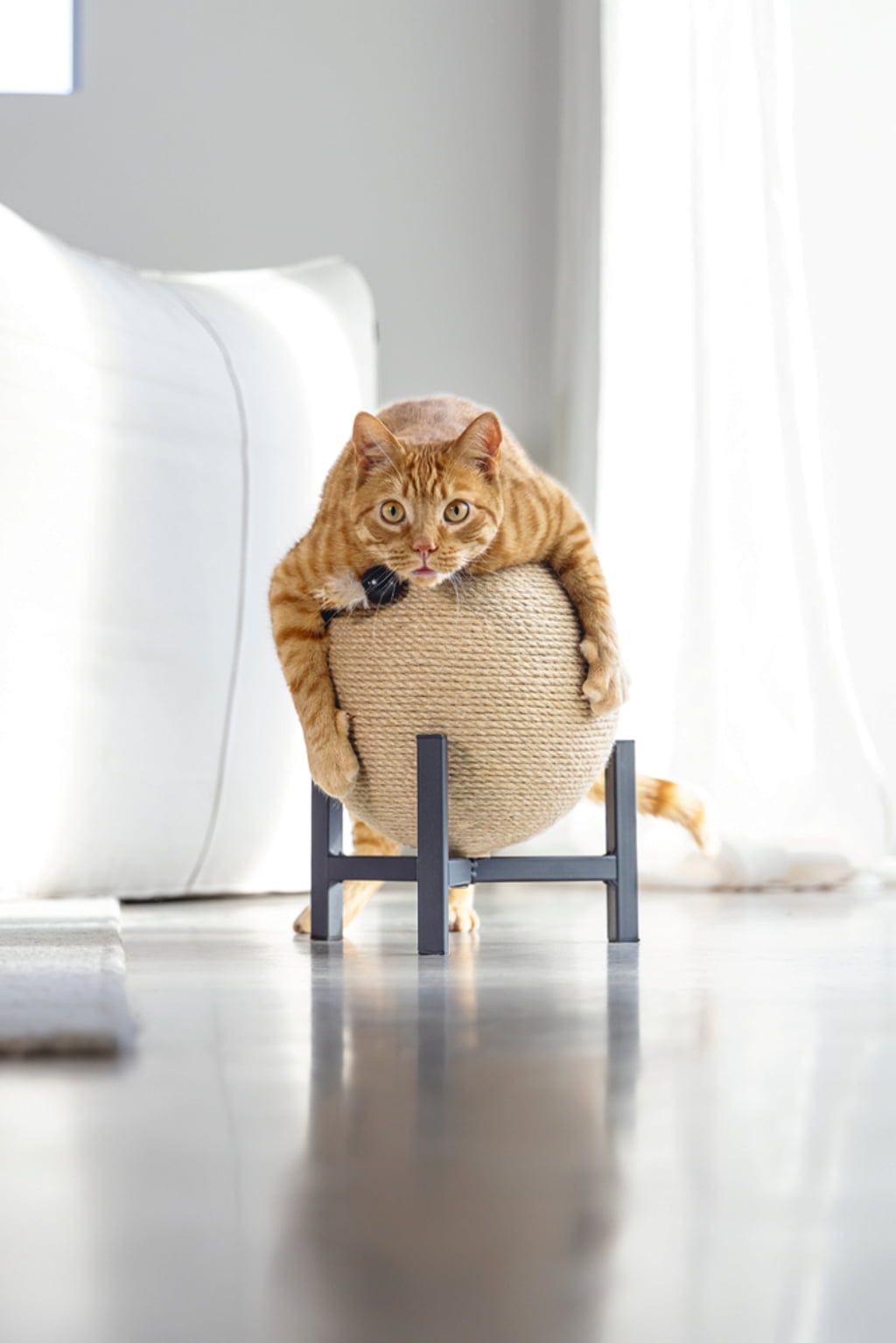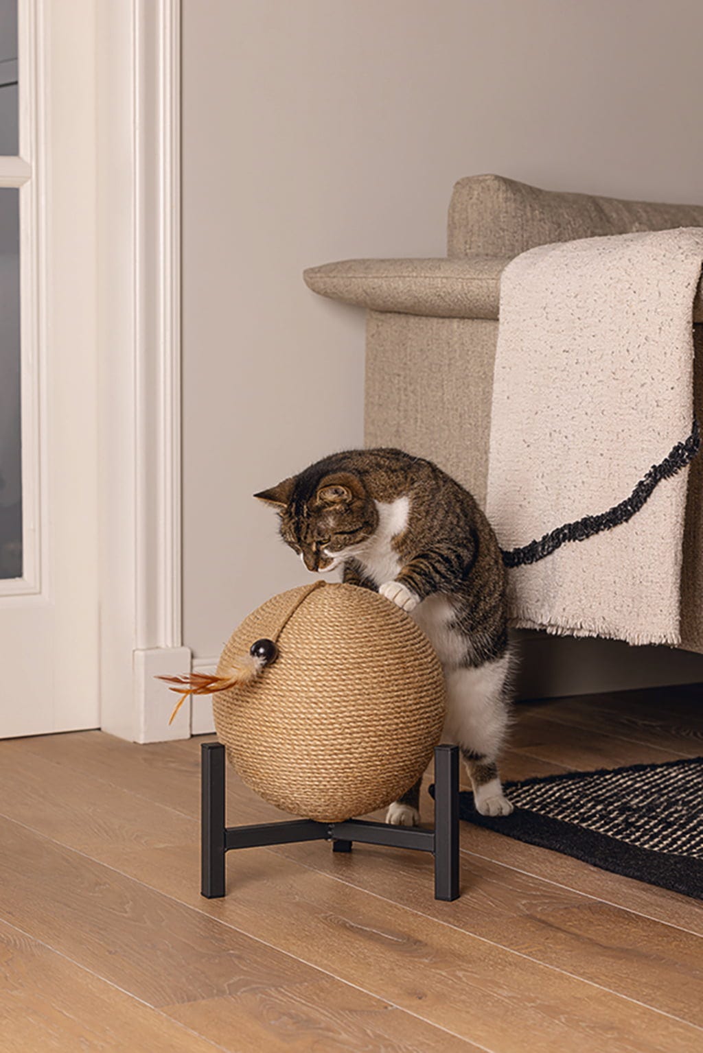 - Napevno namontovaná loptička na škrabanie pokrytá jutovým povrazom (loptička sa neotáča)
