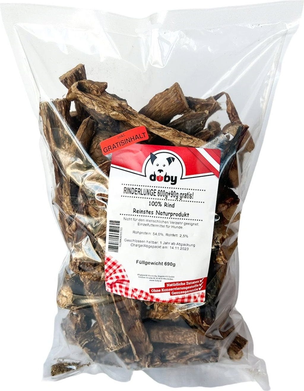 Sušené hovädzie pľúca neobsahujú žiadne konzervačné látky, umelé arómy ani farbivá. Výsledkom je čisto prírodný produkt, ktorý nielen výborne chutí, ale ponúka aj maximálny pôžitok z hryzenia!