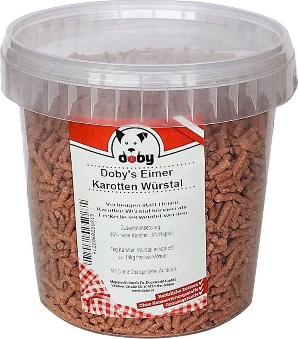 Tento snack značky Doby pozostáva z 96 % z mrkvy, ktorá bola doplnená o 4 % repkového oleja. 1 kg tohto mrkvového snacku zodpovedá cca 14 kg čerstvej mrkvy a dodáva vášmu psovi cenný beta-karotén, zabalený v lahodnej maškrte vhodnej na kedykoľvek počas dňa!