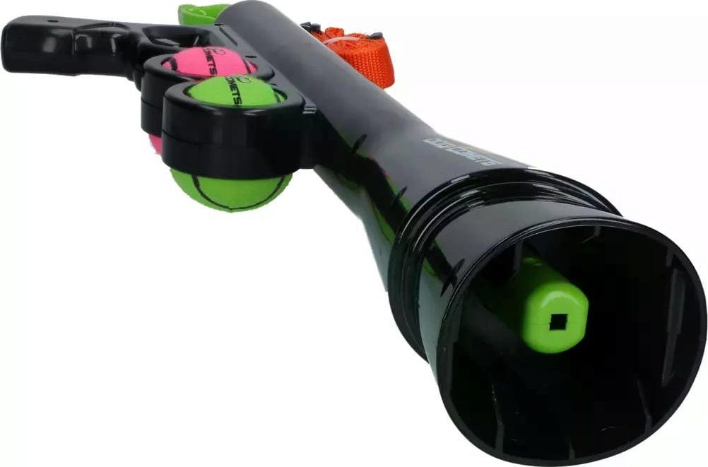 A takto to funguje: jednoducho zatiahnite za páčku na boku (až 9 polôh pre rôzne vzdialenosti), vložte loptičku a stlačte spúšť - zábava sa môže začať!