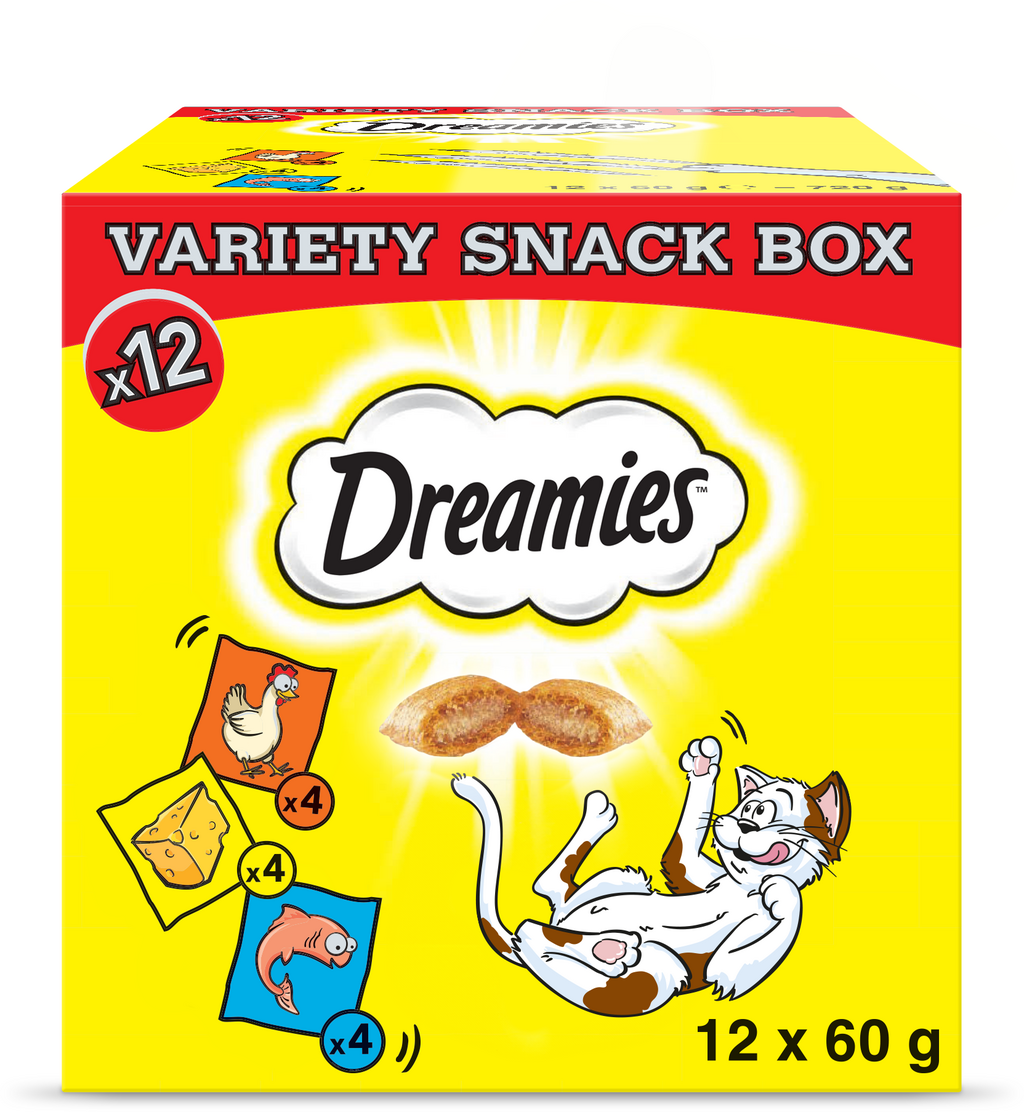 Miluje vaša mačka Dreamies? S veľkým balením Mixbox získate 12 balení s obsahom 60 g v príchutiach kura, syr a losos - ideálne na to, aby ste svoju mačku prekvapili chuťovou rozmanitosťou. Receptúry obsahujú starostlivo vybrané ingrediencie a hodnotné prísady, ako sú antioxidanty, vitamíny a minerálne látky.