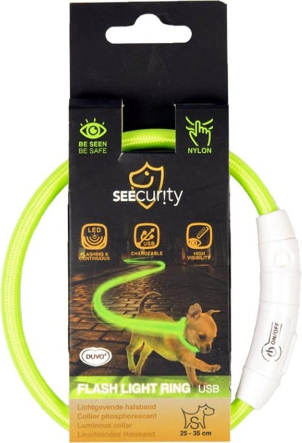 Pre duvoplus je viditeľnosť a bezpečnosť vášho chlpatého miláčika prvoradá! Preto je svietiaci obojok Flash z nylonu vybavený dobre viditeľnými a blikajúcimi LED svetlami. Akonáhle sa svetelné podmienky zhoršia, stačí stlačiť tlačidlo zapnutia/vypnutia a voilà - viditeľnosť až do vzdialenosti 500 metrov je zaručená!