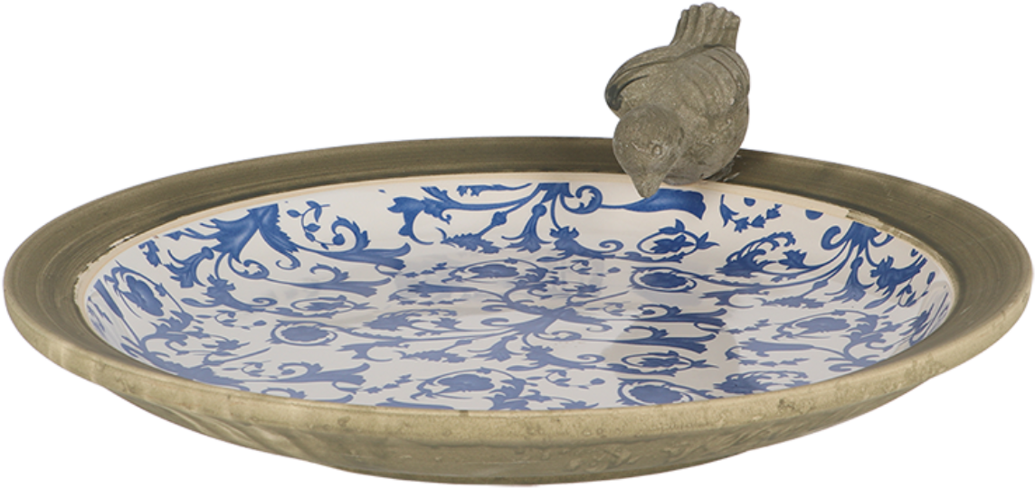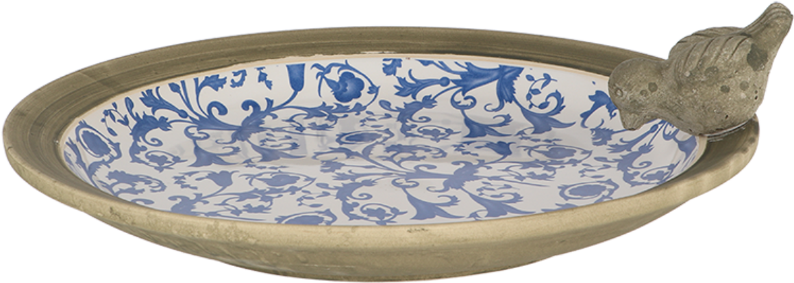 Táto miska pre vtáky v elegantnom starom dizajne zaujme svojou praskanou keramikou a krásnym modrým barokovým motívom - malý keramický vtáčik je roztomilým doplnkom! Týmto spôsobom môžete ľahko poskytnúť vtákom, ktoré navštívia vašu záhradu alebo balkón, pekné miesto na kúpanie a pitie!