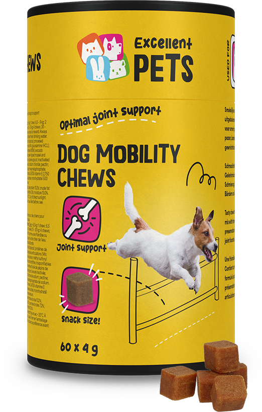 Excellent Pets Mobility Soft Chews sú viac ako len pochúťky - sú to výživové doplnky pre vášho štvornohého priateľa v tej najchutnejšej forme. Sú plné vysokokvalitných zložiek a podporujú normálnu funkciu kĺbov.