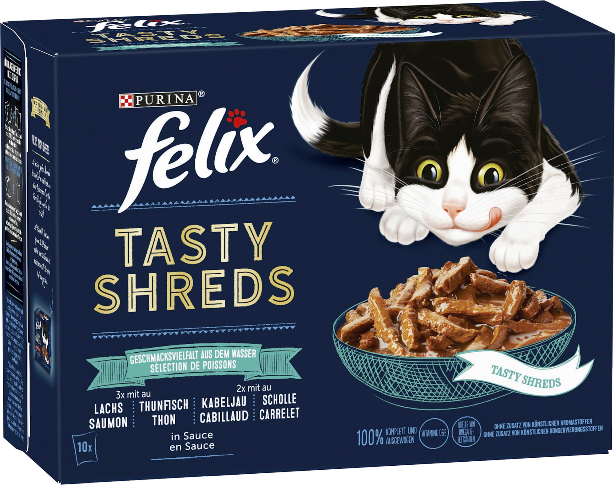 Felix Mokré krmivo "lahodný výber z rýb" Tasty Shreds 10 x 80 g, 800 g