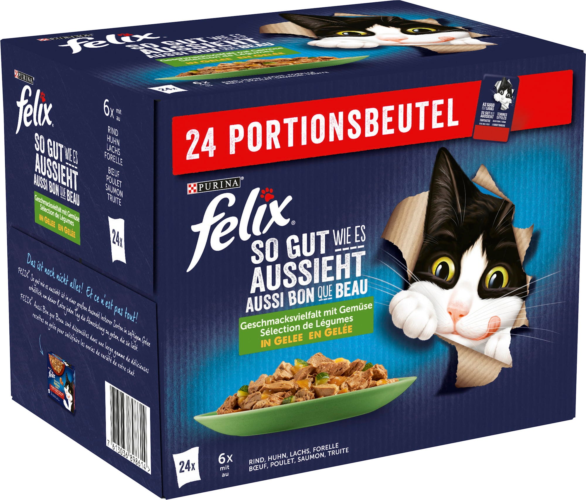 Mix mokrých krmív s mäsom a zeleninou Felix Fantastic prináša do misky neodolateľné chute a vyvážené receptúry. A čo je najlepšie, každá jedna porcia chutí rovnako dobre, ako vyzerá!
