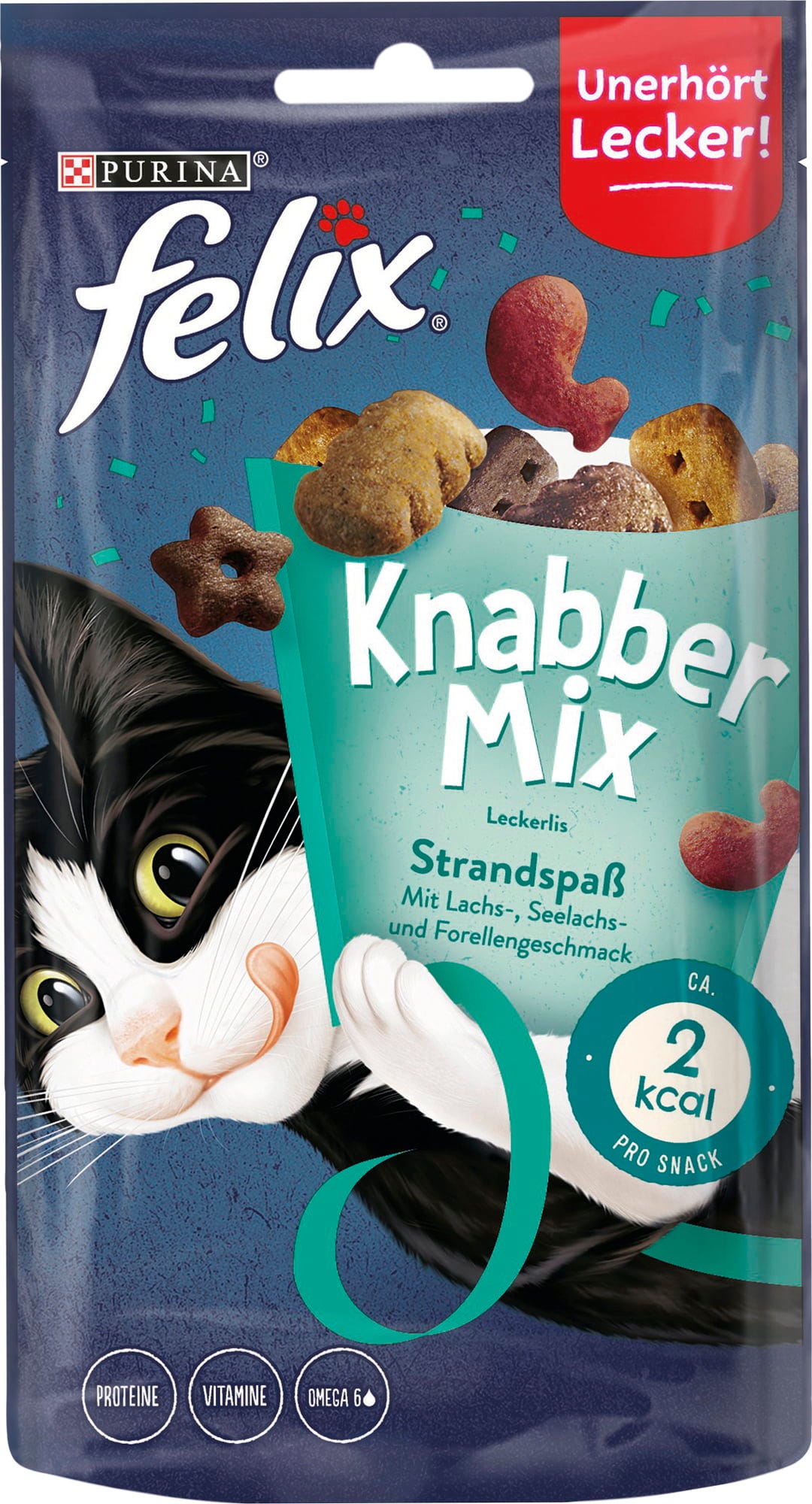 Je váš malý gurmán skutočným milovníkom rýb? Potom máme pre vášho "rybára", ktorý miluje snacky, to pravé! Party mix Felix kombinuje tri chutné jedlé ryby (lososa, tresku a pstruha), ktoré prenesú mlsné jazýčky priamo k moru a poskytnú im skutočné chvíle potešenia! Mix sa dodáva v rôznych, lahodne voňavých tvaroch, z ktorých každý obsahuje cca 2 kcal.