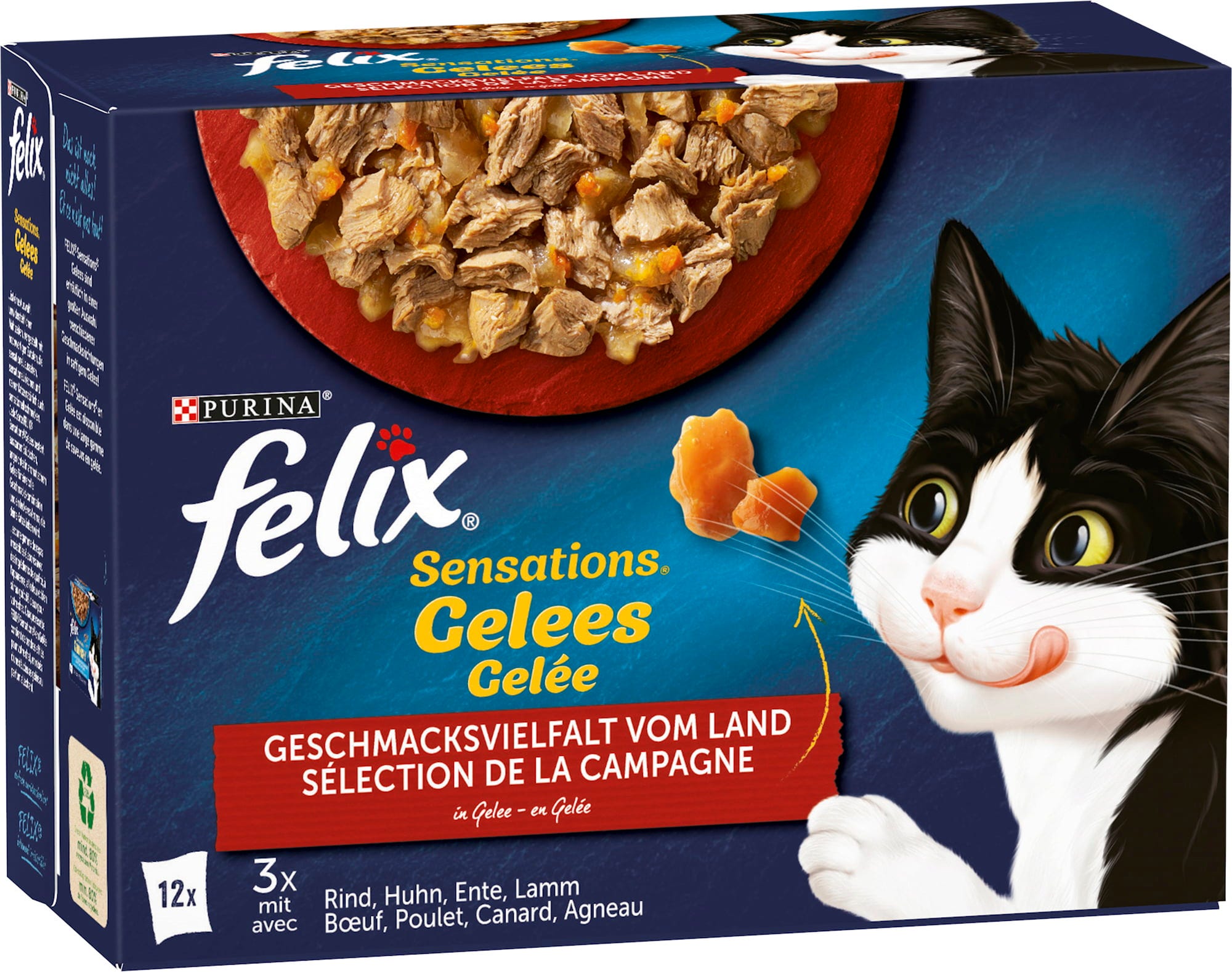 Sensations Felix obsahuje jemné kúsky v neodolateľnom želé, ktoré poskytujú hodnotné ingrediencie a lahodné chute - presne to, kvôli čomu sa oplatí byť mačkou!
