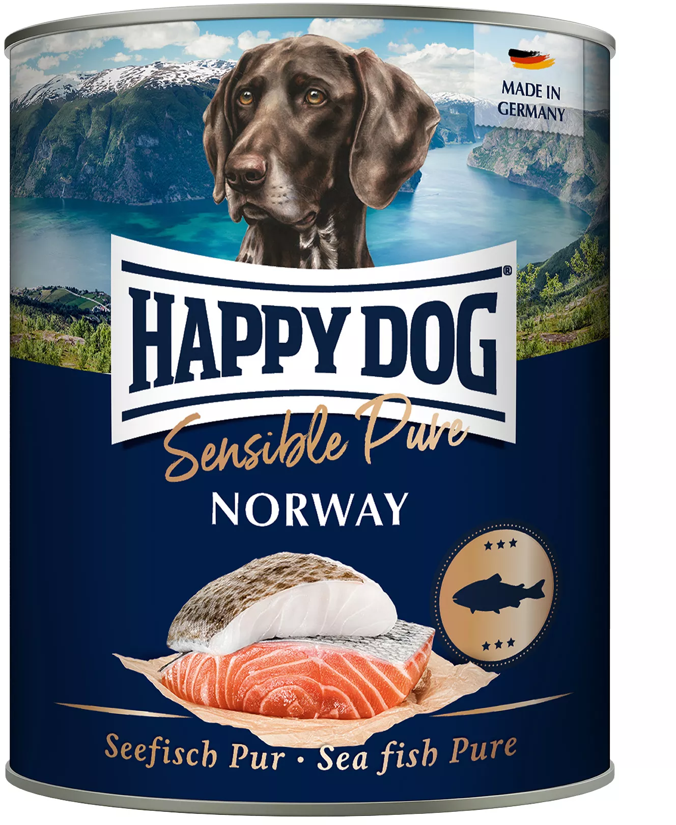 Prémiové mokré krmivo Happy Dog Sensible Pure Norway poskytuje vašim domácim miláčikom prirodzenú a vyváženú stravu. Táto lahodná pochúťka sa skladá zo 100 % lahodných bielych rýb, ako sú platesa a treska, ako aj z jemného lososa. Hoci poskytuje dôležité vitamíny a minerály, neobsahuje sóju ani iné rastlinné prísady.