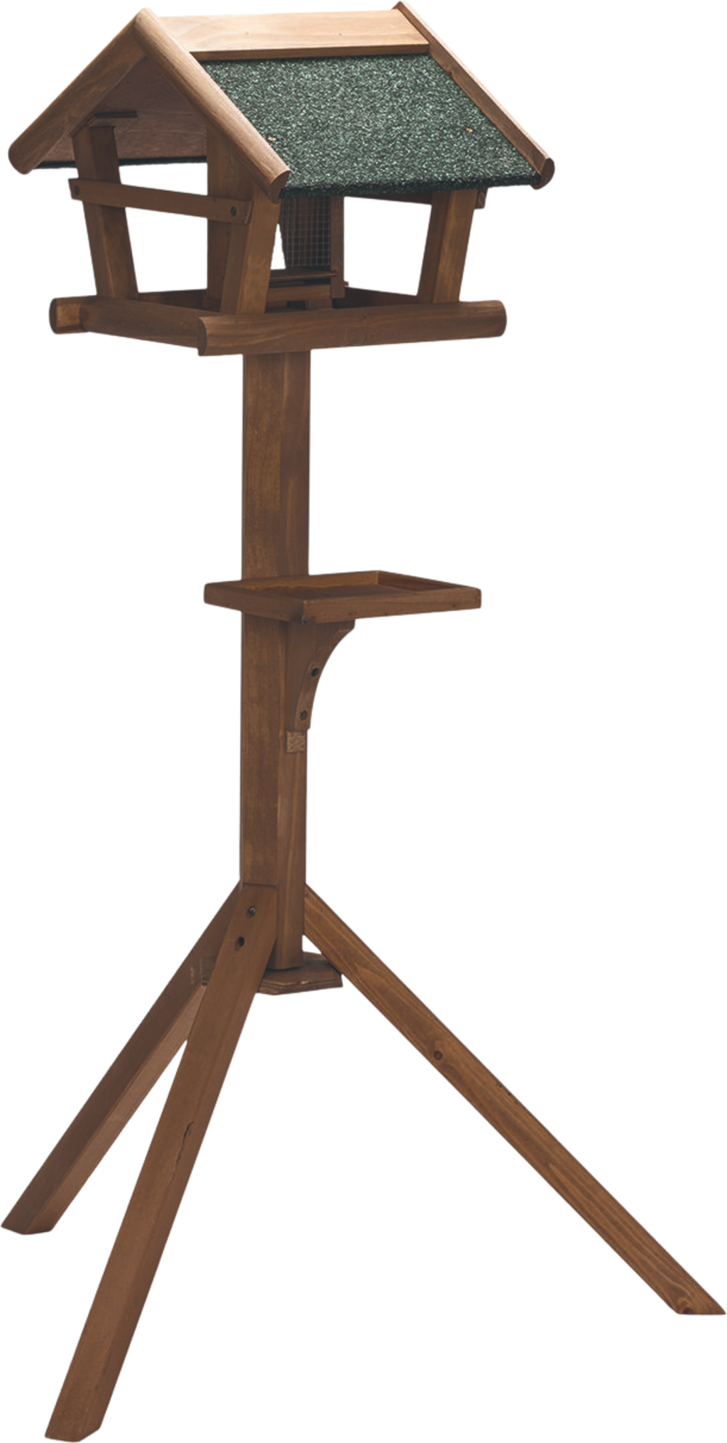 Táto drevená vtáčia búdka stojí bezpečne vďaka svojmu podstavcu, takže je nenápadným a nadčasovým doplnkom Má odolnú bitúmenovú striešku, ktorá chráni pred dažďom a snehom. Miska na kŕmenie má aj odtokové otvory, aby krmivo zostalo vždy suché a čerstvé. Doplňovanie krmiva je mimoriadne jednoduché vďaka integrovanému dávkovaču krmiva.