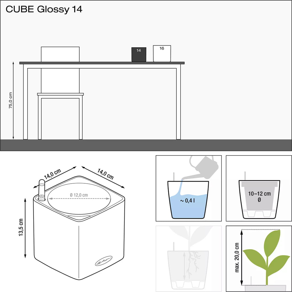 Lechuza Kvetináč CUBE Glossy CAT 14, biela vysoký lesk