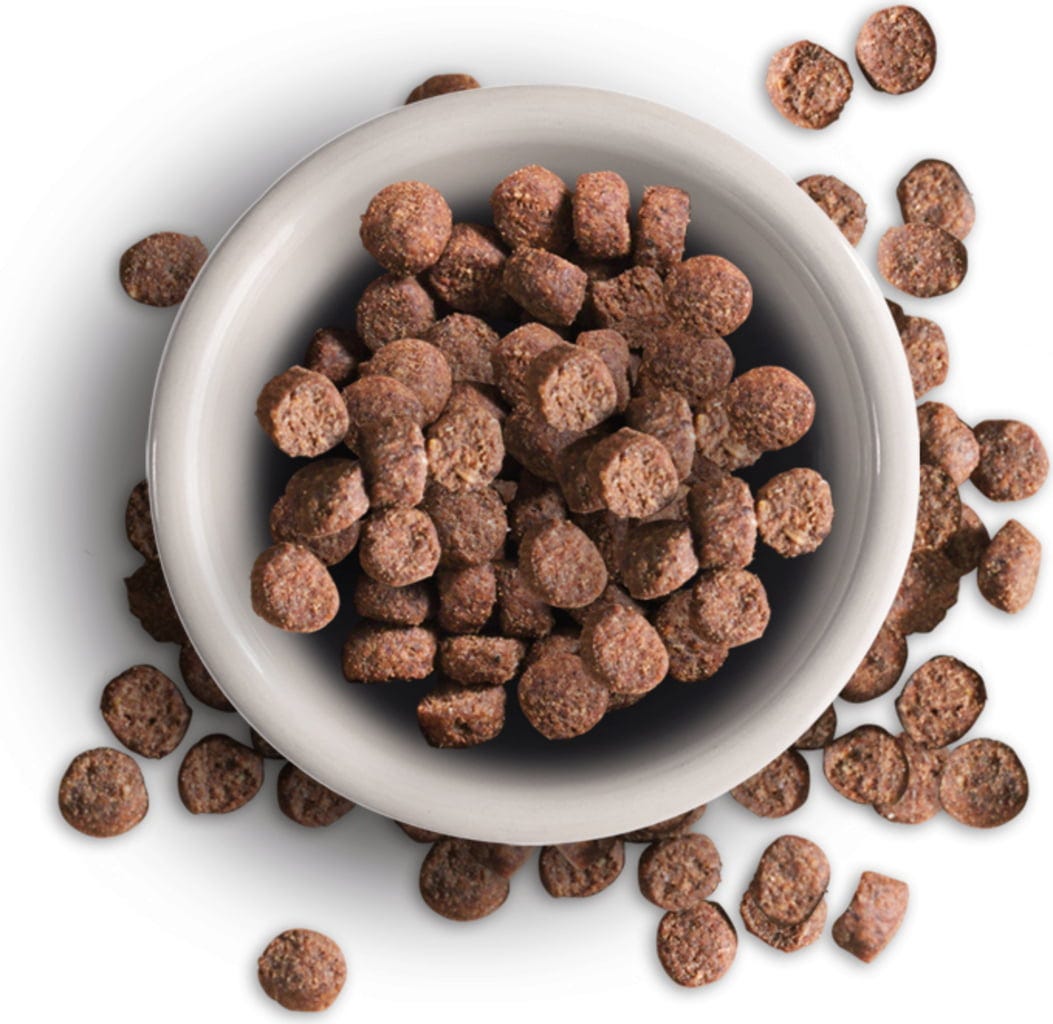 30 % Čerstvé hydinové mäso, 23 % Hydinový proteín s nízkym obsahom popola a sušený, Ryža, Kukurica, 9 % Rybia múčka z morských rýb, 4 % Sušené jablkové výlisky, Hydrolyzovaná hydinová pečeň, Sladký raž, Sušené vajce, Morský zooplanktón mletý (2,5 % Krill), 2,5 % Ovsené otruby, Pivovarské kvasnice inaktivované a sušené, 1,3 % Chia semienka, Hydinový tuk, Sodium chloride, Potassium chloride, Chicoree Inulin