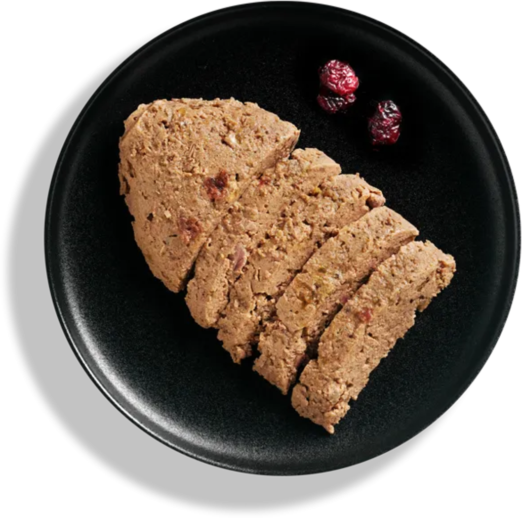 37 % Kuracie srdce/pečeň/žalúdok, 30 % Bažantie mäso, 29,8 % Mäsový vývar, 2 % Brusnice, 0,5 % Sušené vaječné škrupiny, 0,5 % Minerálne látky, 0,2 % Olej z lososa