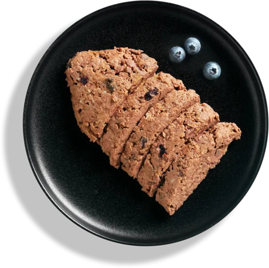 30 % Büffellunge/-leber/-herz/-niere[1], 30 % Kuracie mäso/pečeň/srdce, 29,8 % Mäsový vývar, 6 % Hovädzie pľúca, 3 % Čučoriedky, 0,5 % Sušené vaječné škrupiny, 0,5 % Minerálne látky, 0,2 % Olej z lososa