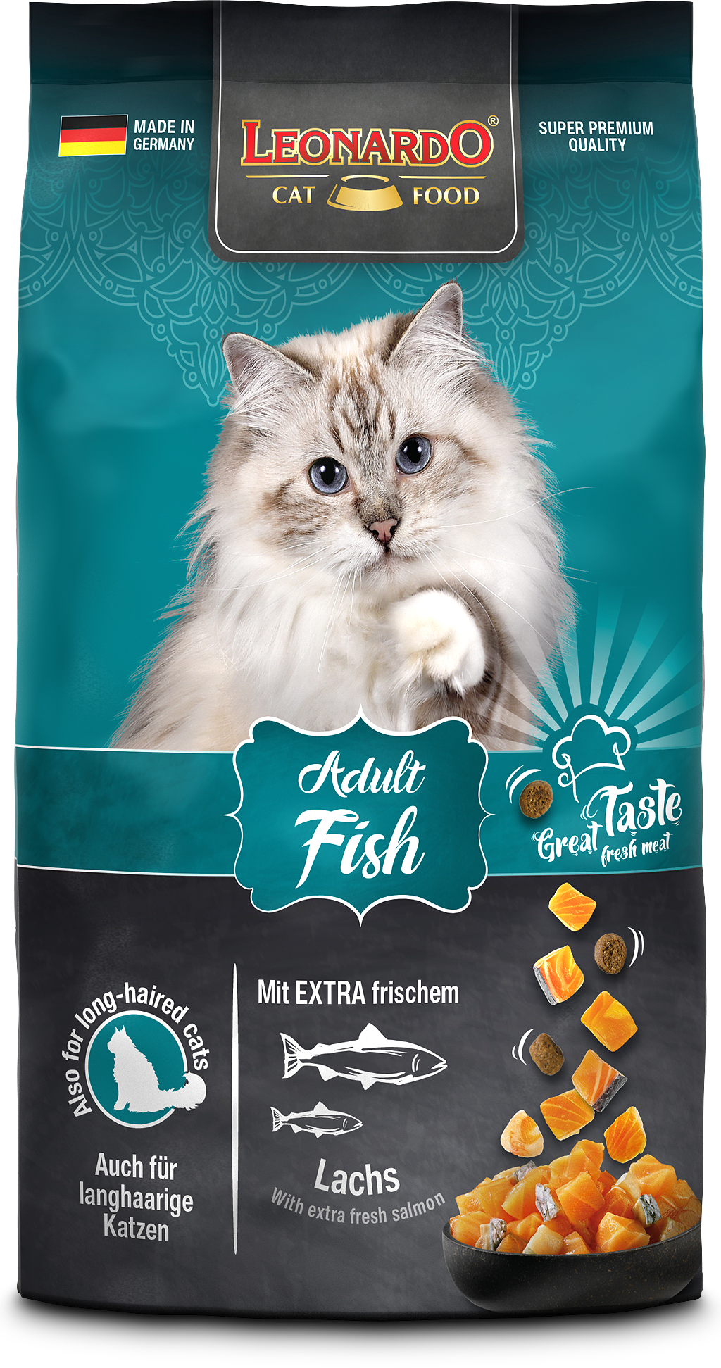 Toto chutné suché krmivo zaujme špeciálnou receptúrou z extra čerstvého lososa, doplneného o krill a chia semienka.