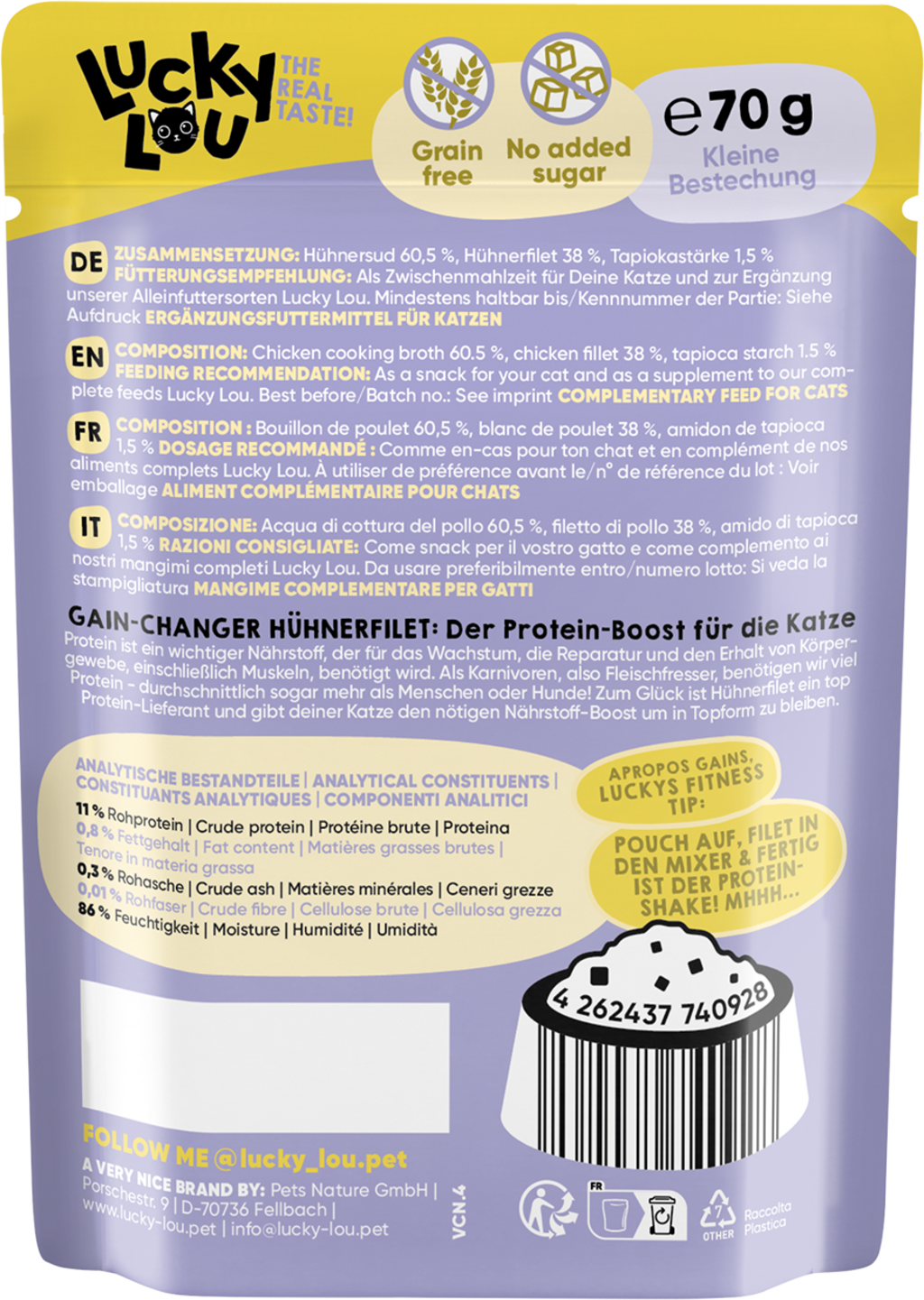 Lucky Lou Extra Food Pouch kuracie filety vo vývare, 70 g