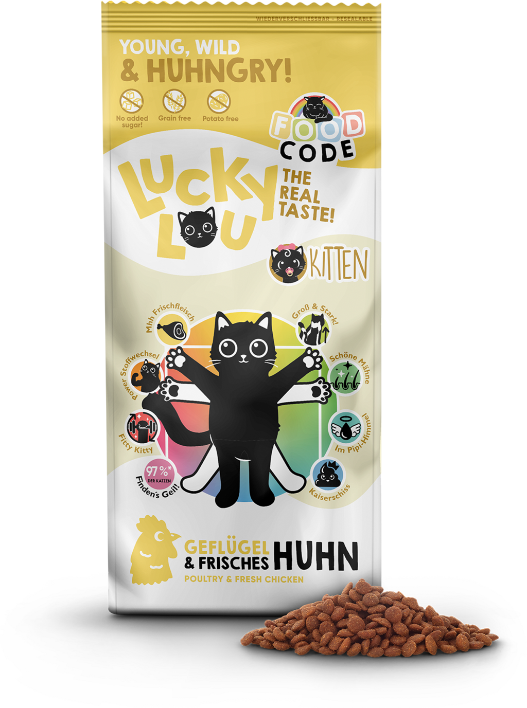 Lucky Lou Food Code Kitten s hydinovým a kuracím mäsom, 3 kg