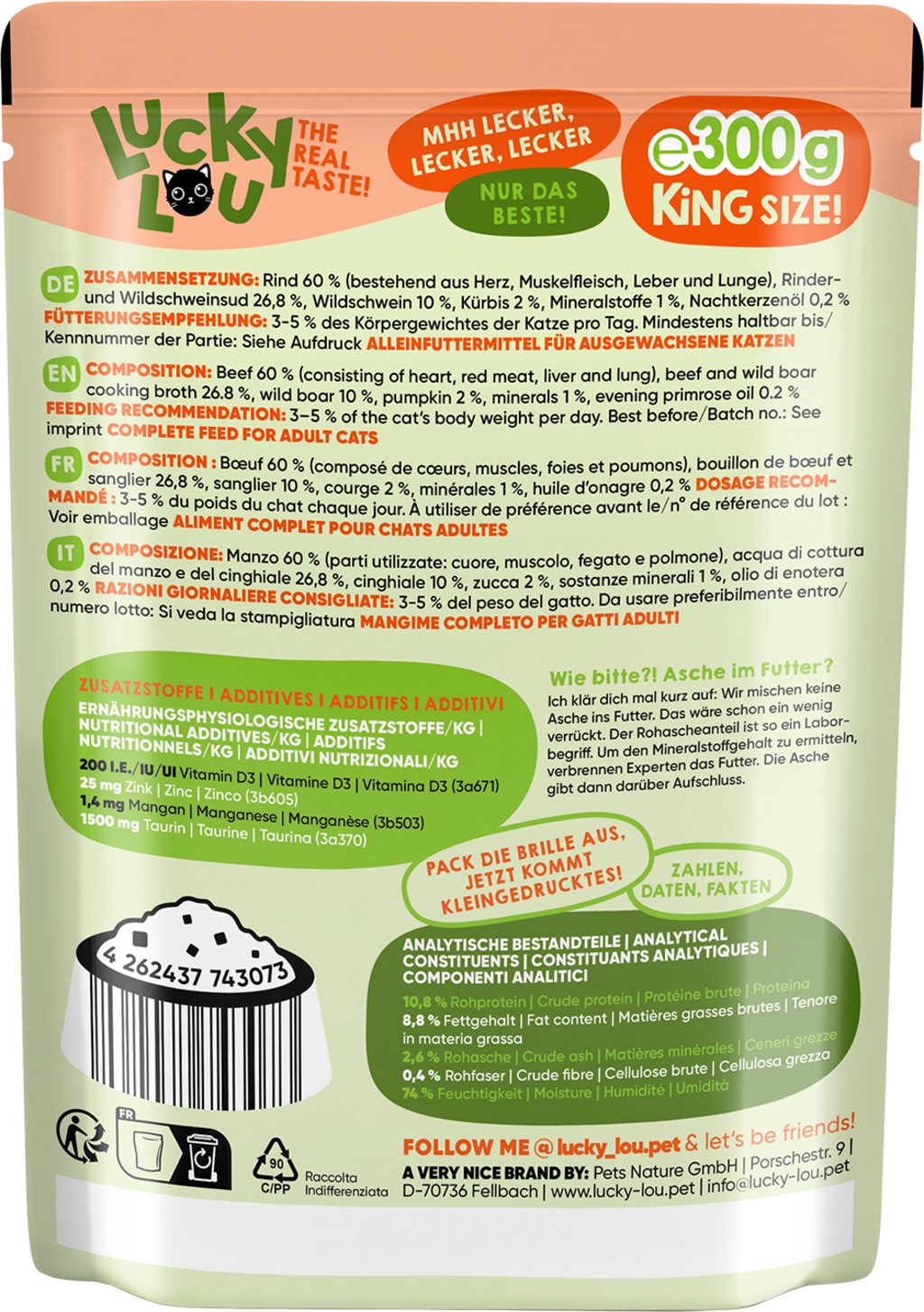 Lucky Lou Lifestage Pouch Adult s hovädzím mäsom a diviakom, 300 g