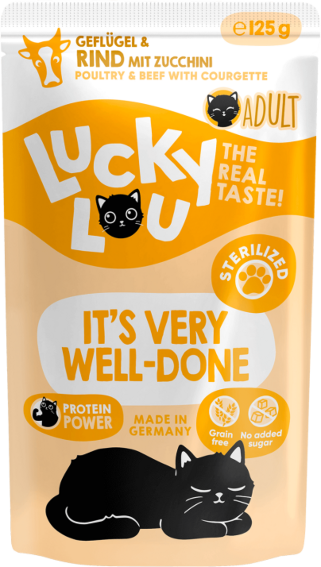 Lucky Lou Lifestage Pouch Adult Sterilized s hydinovým a hovädzím mäsom, 125 g