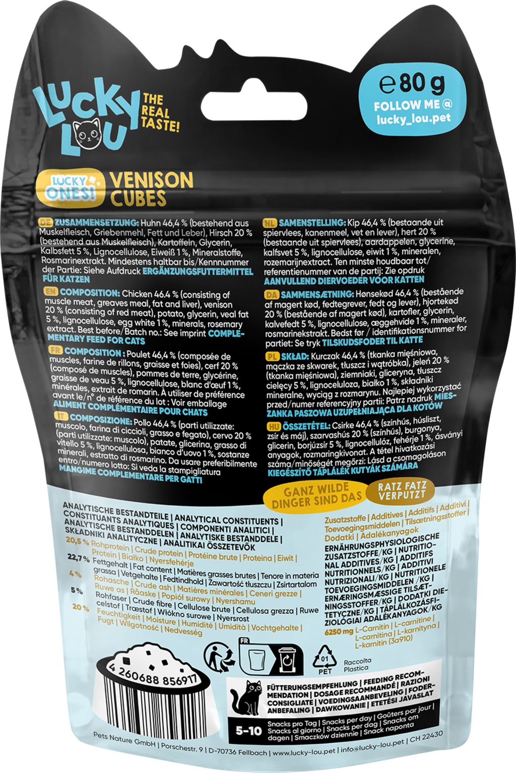 Či už ako kvalitný snack medzi jedlami, ako odmena alebo ukryté v hračke, s lahodnými Lucky Ones Cubes môžete vašej mačke urobiť výnimočnú radosť.