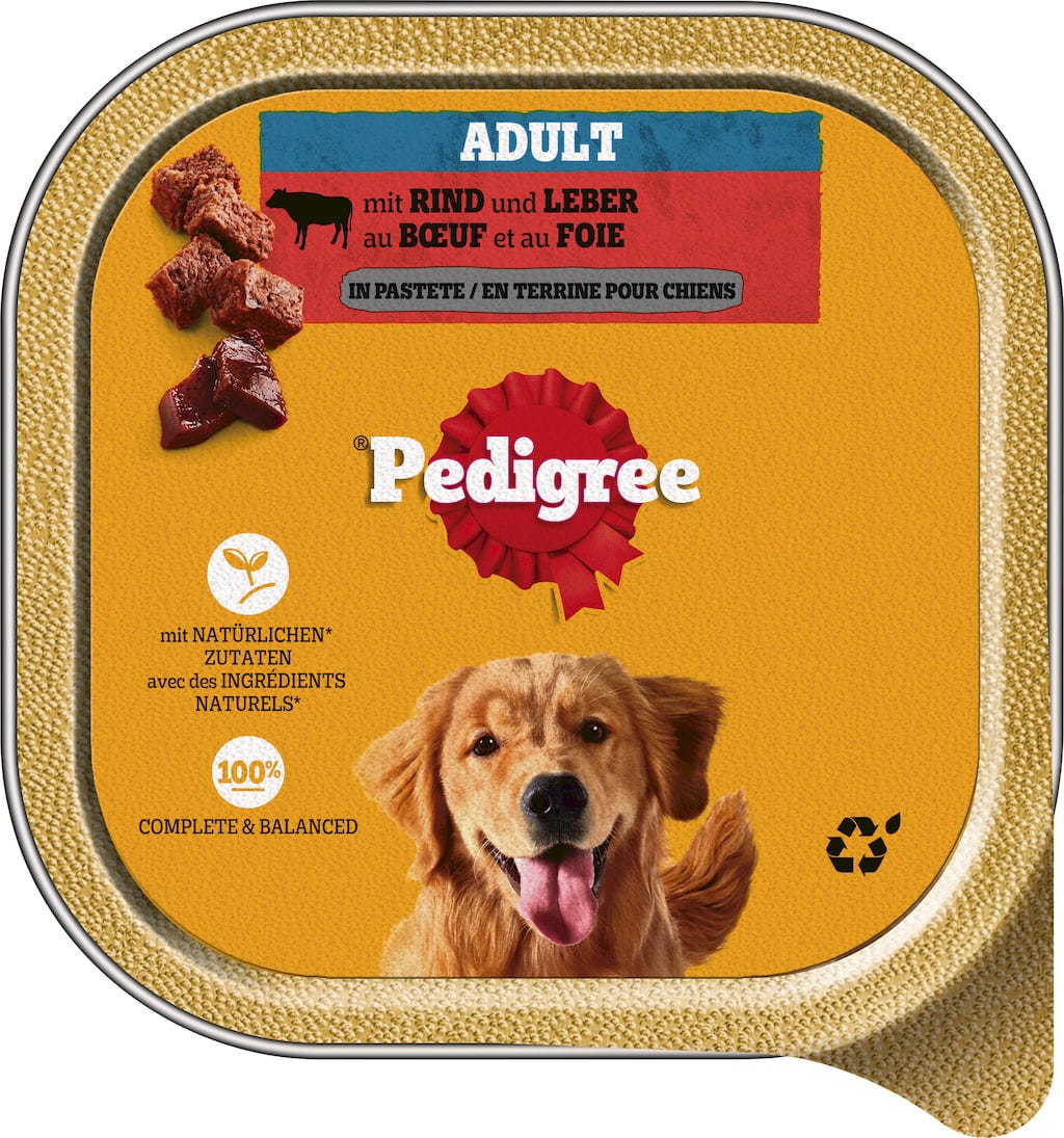 Kompletné krmivo s mäsitou štruktúrou paštéty - ideálne pre dospelé psy. Mokré krmivo je kompletným pokrmom, ktorý možno kedykoľvek kombinovať so suchým krmivom pre psov. Pedigree používa len tie najlepšie suroviny a dbá na vyvážené zloženie - na podporu kostí, srsti a kože, ako aj na normálne trávenie a normálny imunitný systém.