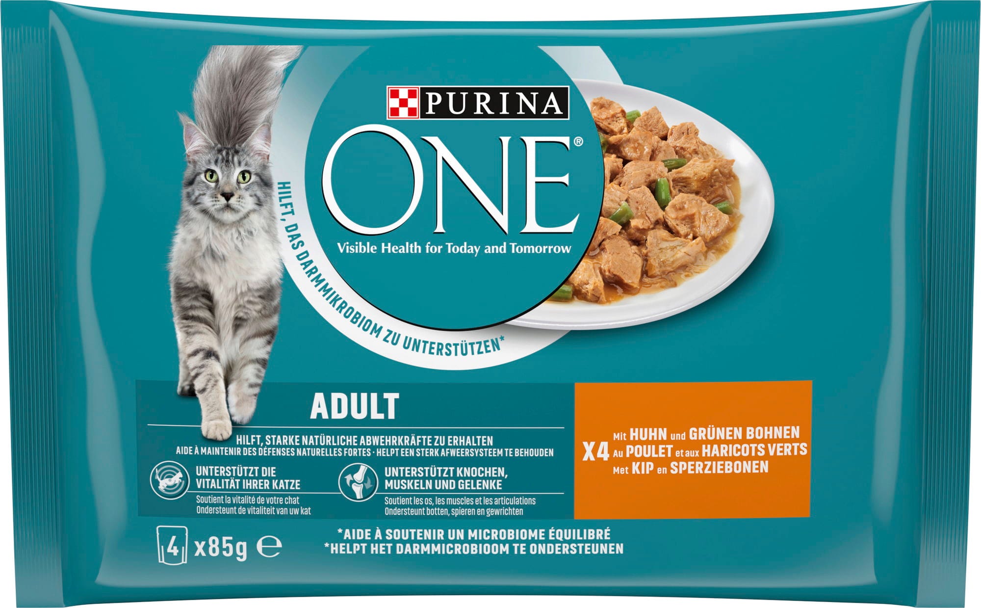 PURINA ONE Mokré krmivo s kuracím mäsom a zelenou fazuľkou Adult 4 x 85 g, 340 g